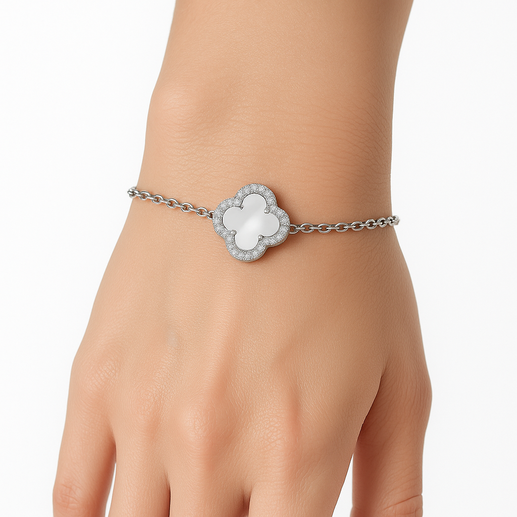 Pulsera Flor Inspirada Van C con Micro Circonias y Piedras Naturales Plata .925 con Rodio