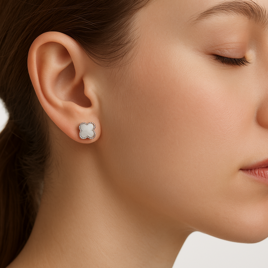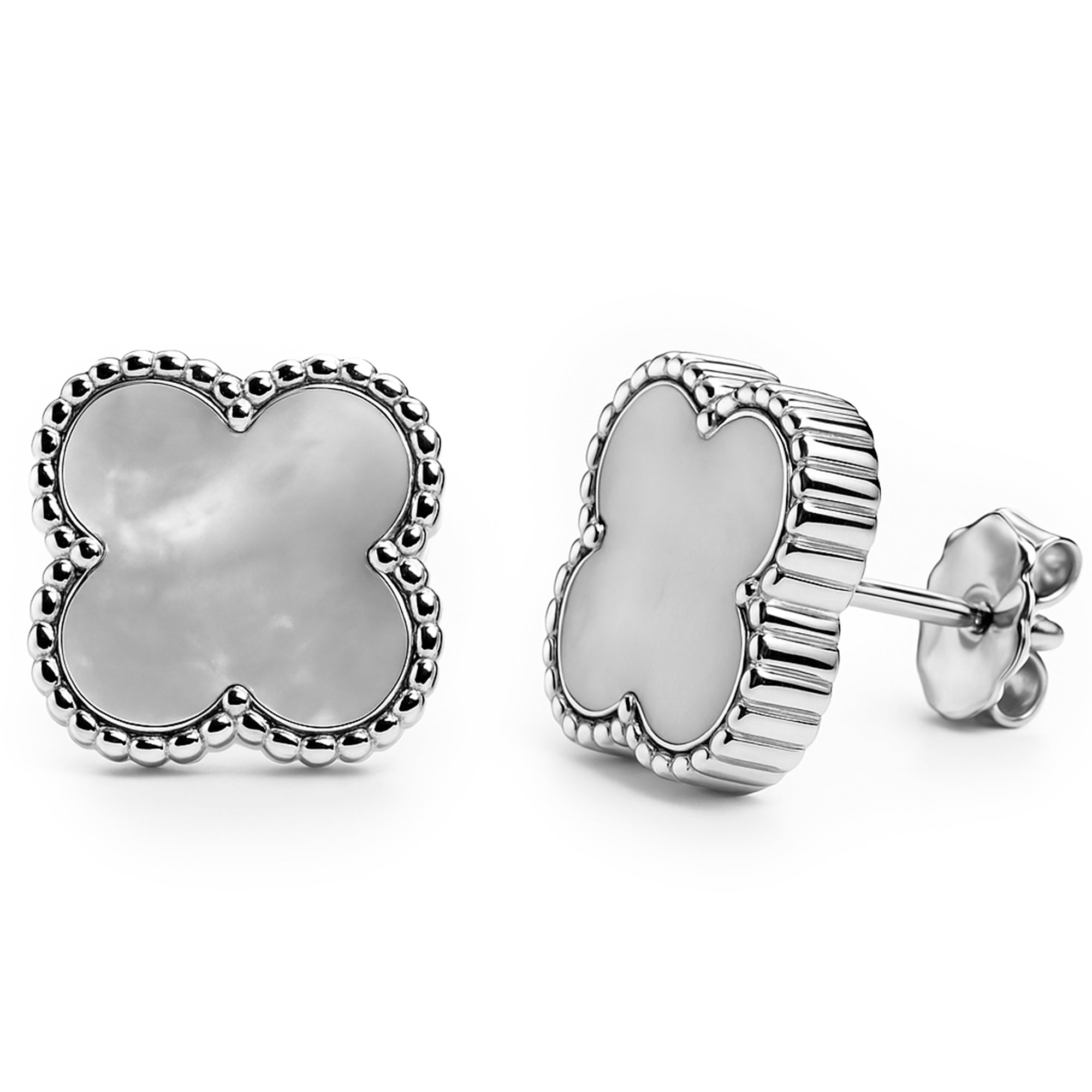 Broquel Flor Mediano Inspirado Van C Madre Perla Plata .925 con Rodio