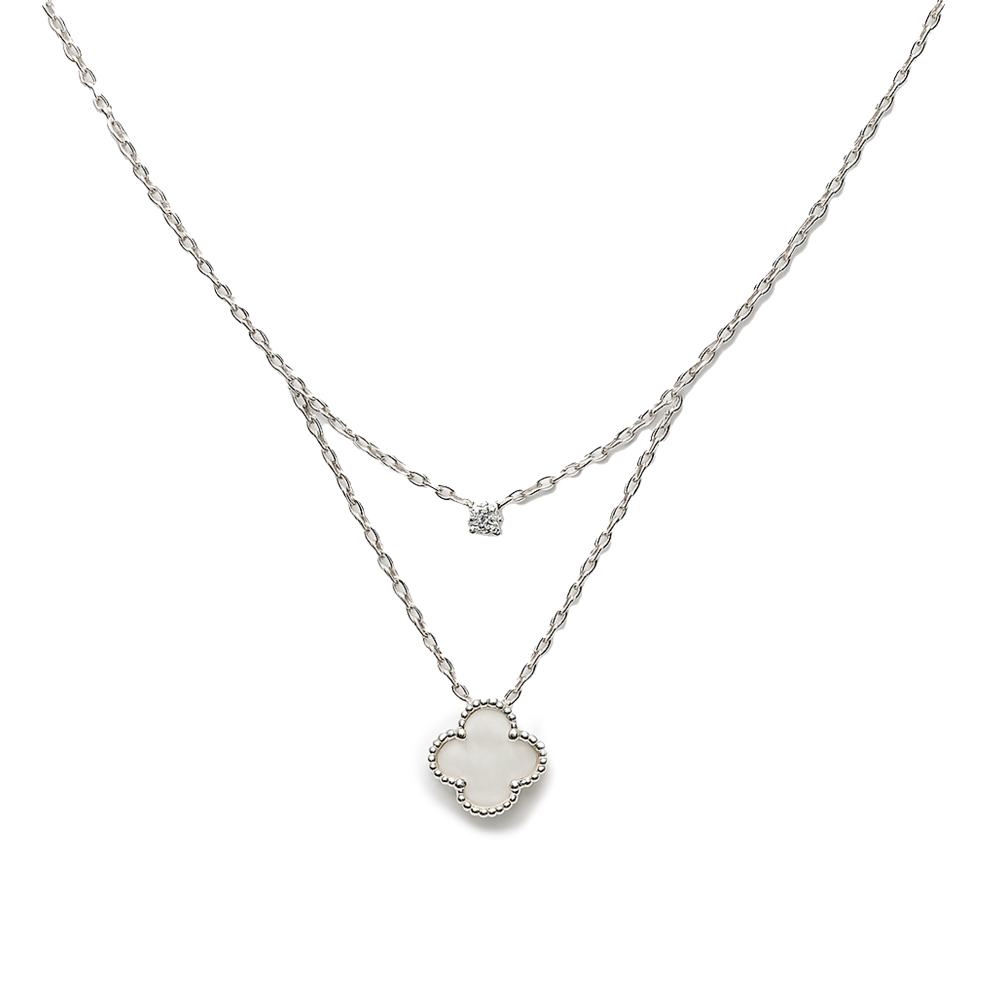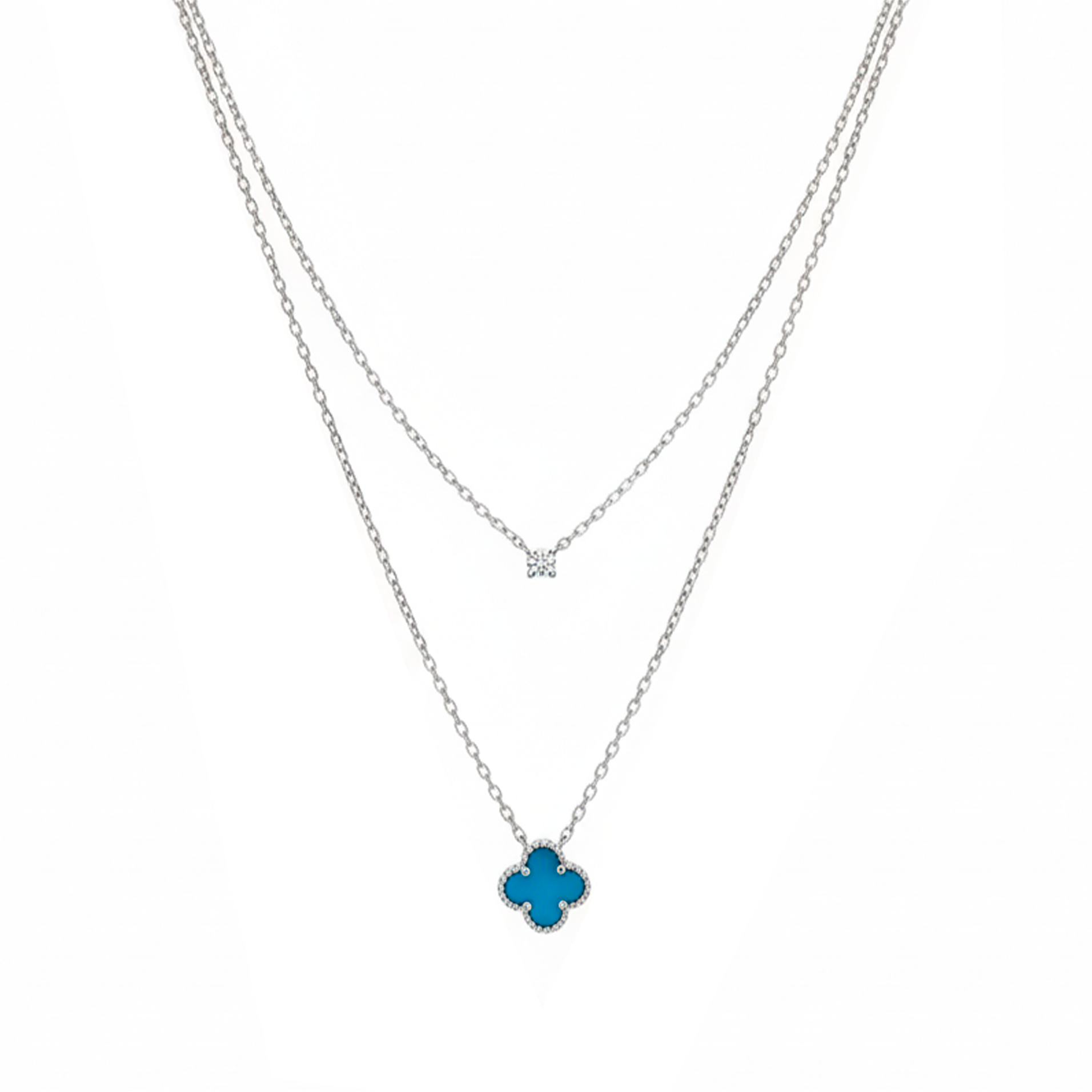 Collar Doble Inspirado Van C Piedras Naturales con Circonia Plata .925 con Rodio