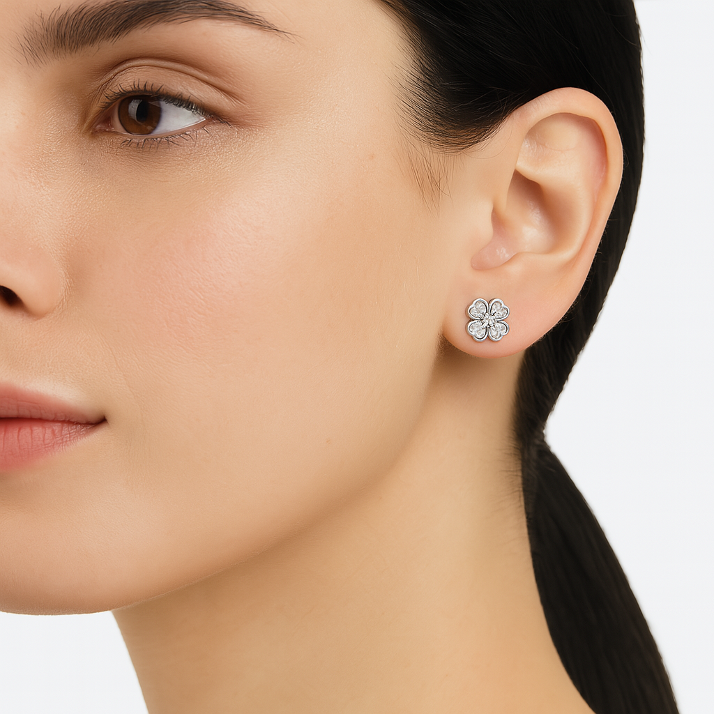 Broquel Trebol 4 Corazones con Circonias Plata .925Descargar Imagen