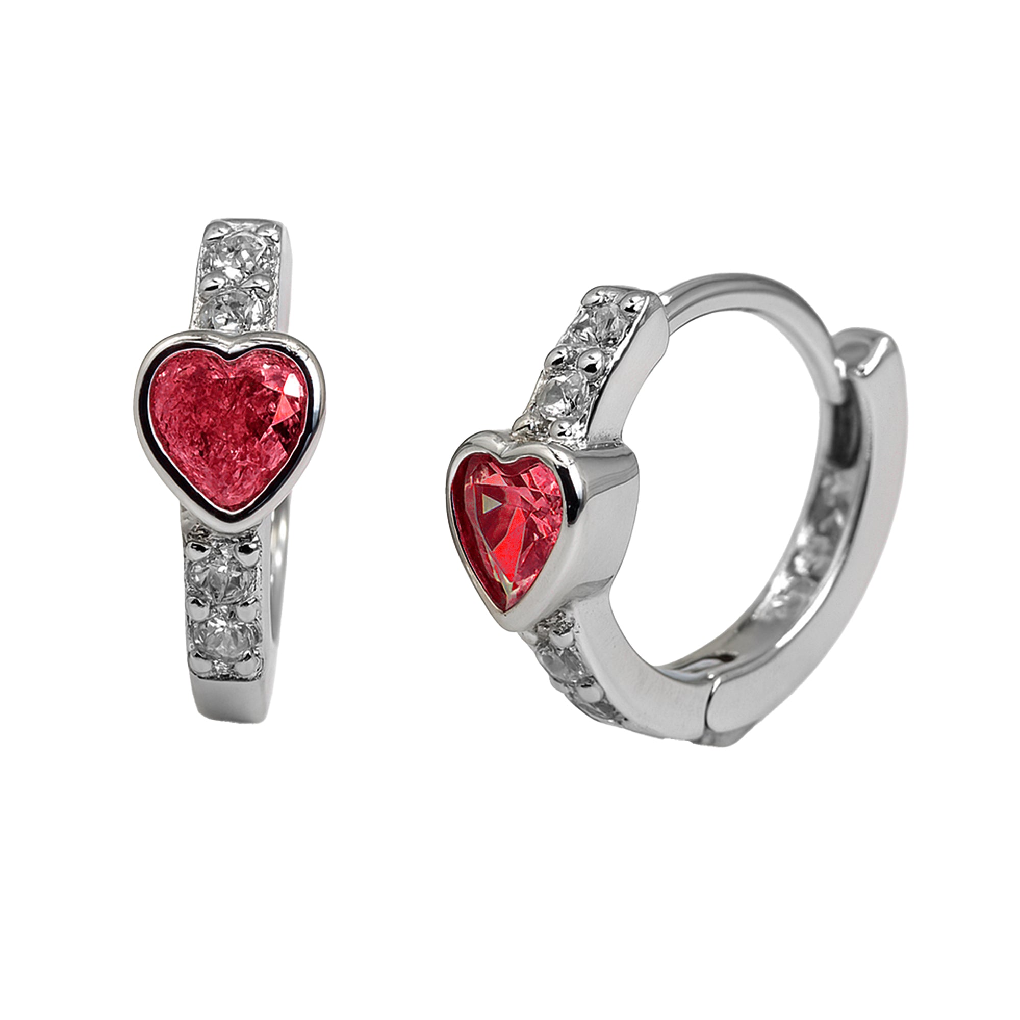Huggies Circonia Corazon con Micro Circonias Plata .925 con Rodio. Tamaño:1.2 cm. Look ideal para tu día a día.