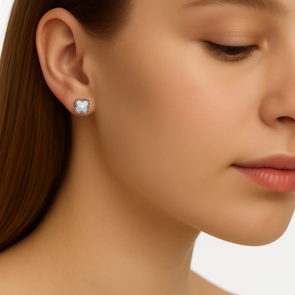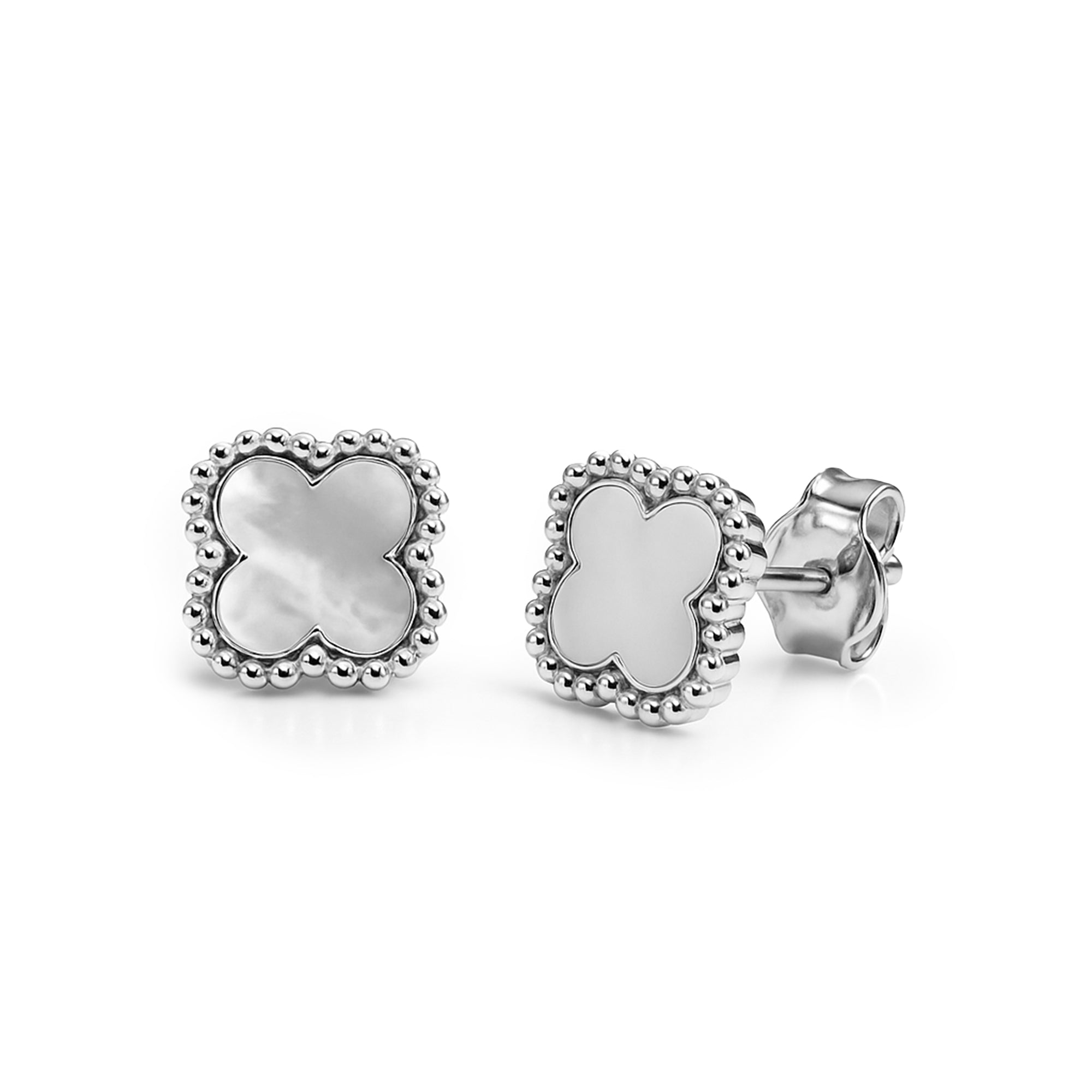 Broquel Flor Mediano Clasico Inspirado Van C Madre Perla Plata .925