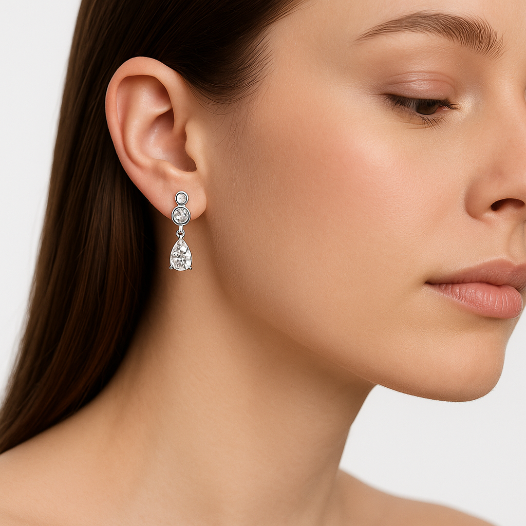 Broquel Circonia con Gota Colgante Plata .925 con rodio