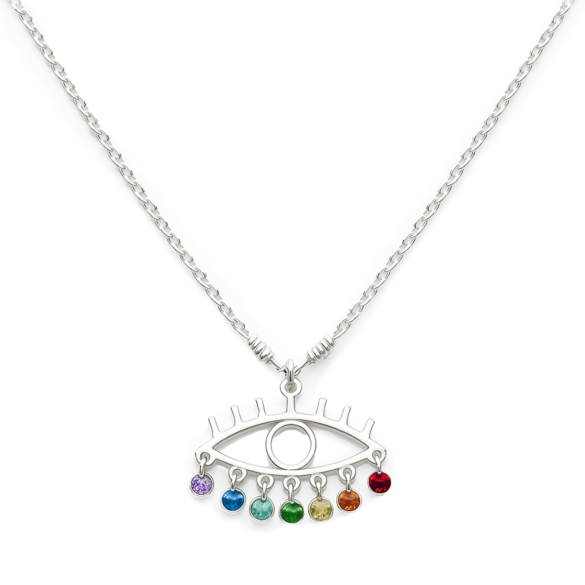 Collar Ojo Turco Liso con Cristales Multicolor Plata .925