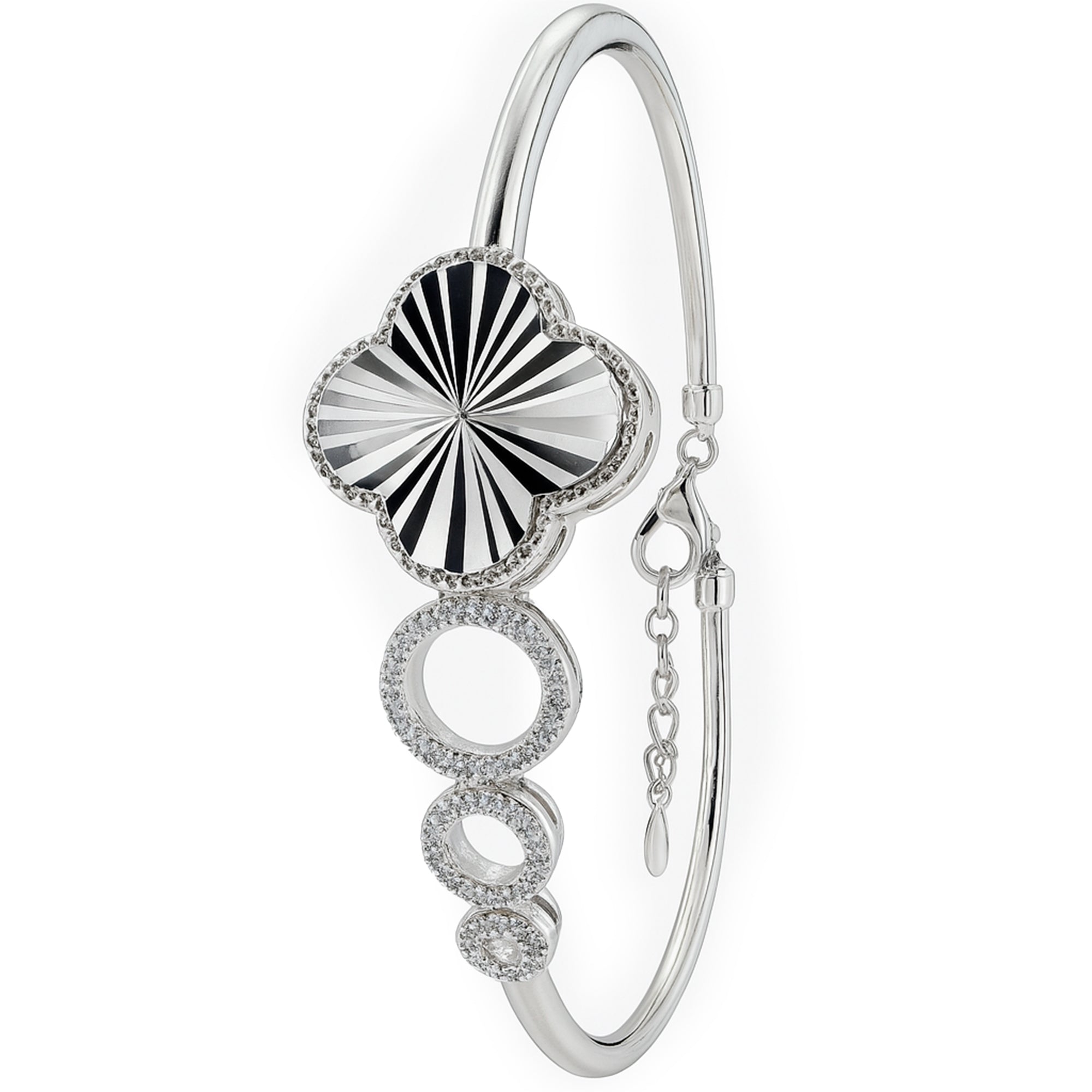 Pulsera Flor Rigida Inspirada Van C con Micro Circonias Plata .925 con Rodio mas extensiónDescargar Imagen