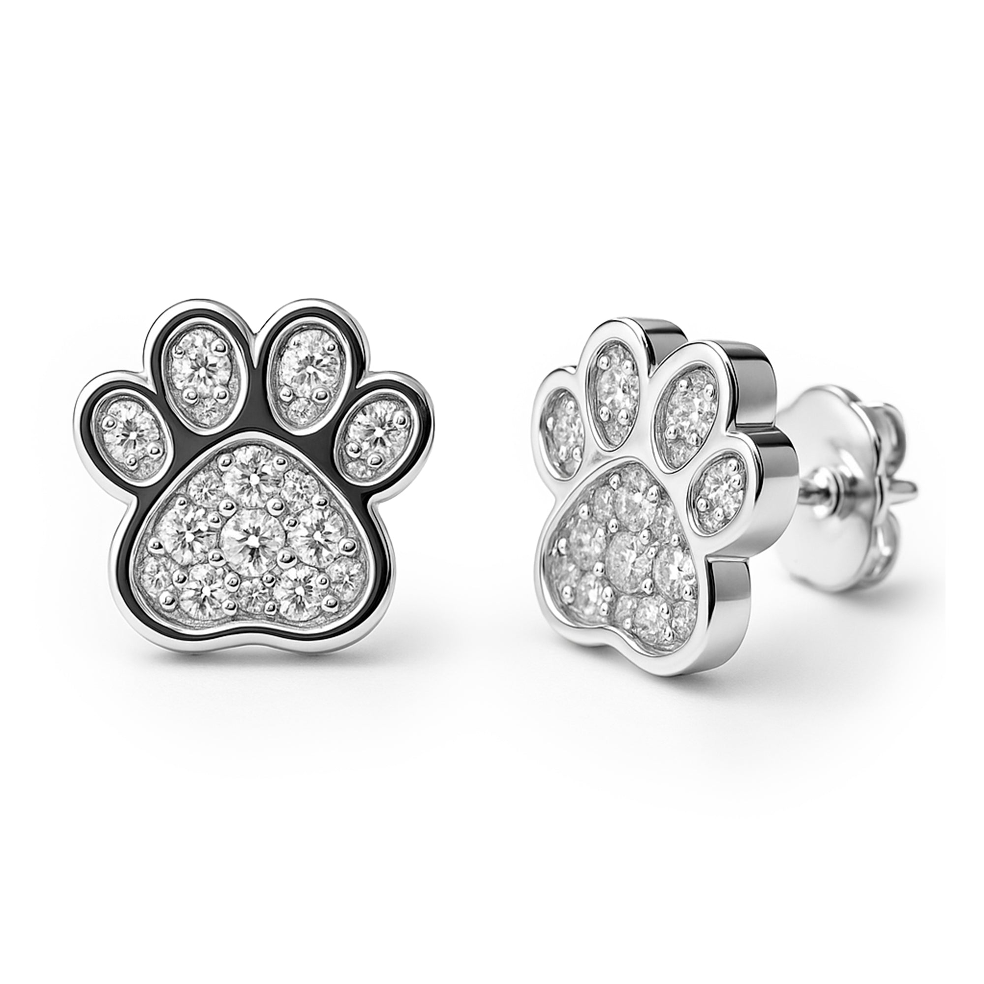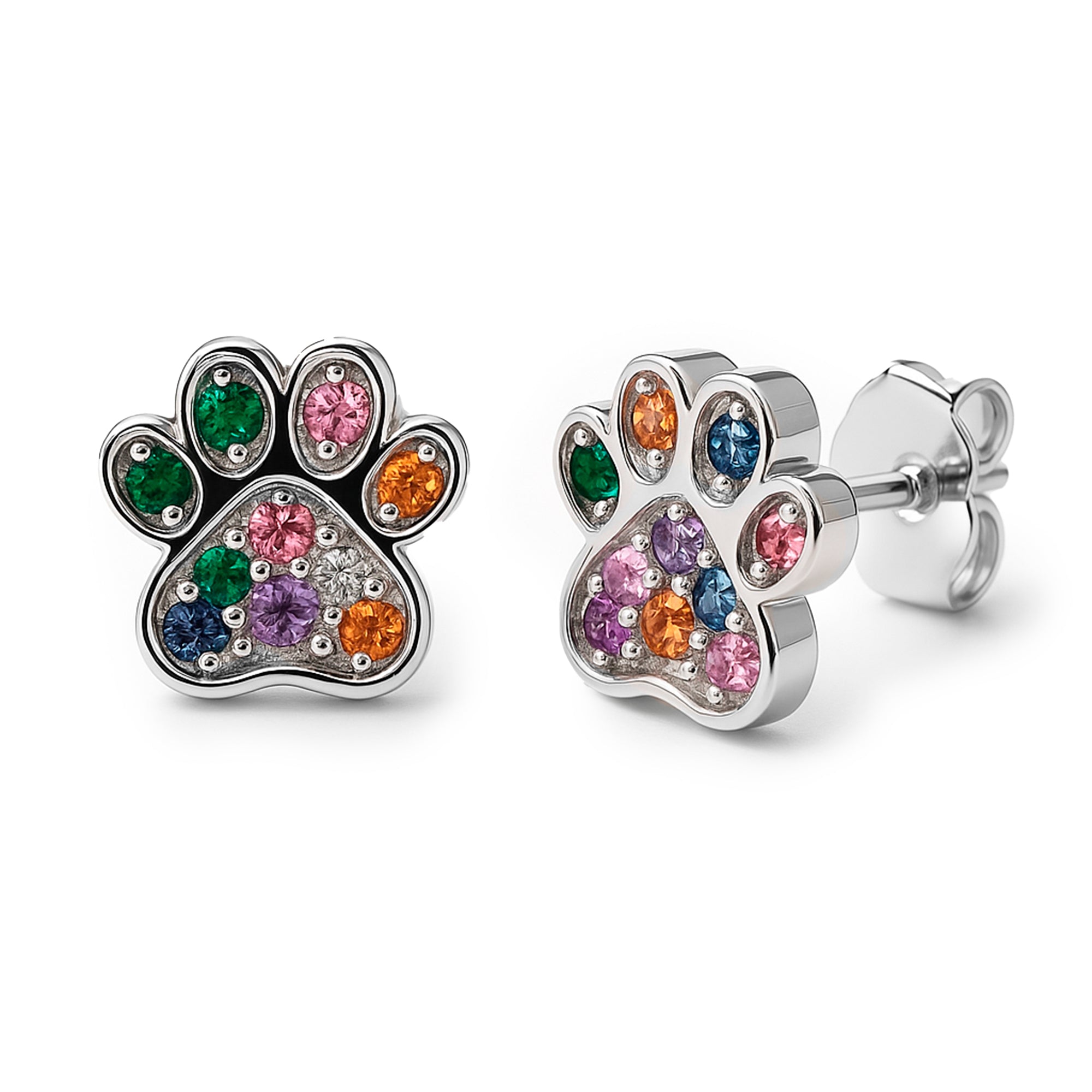 Broquel huella con circonia blanca o multicolor en baño de rodio plata .925
