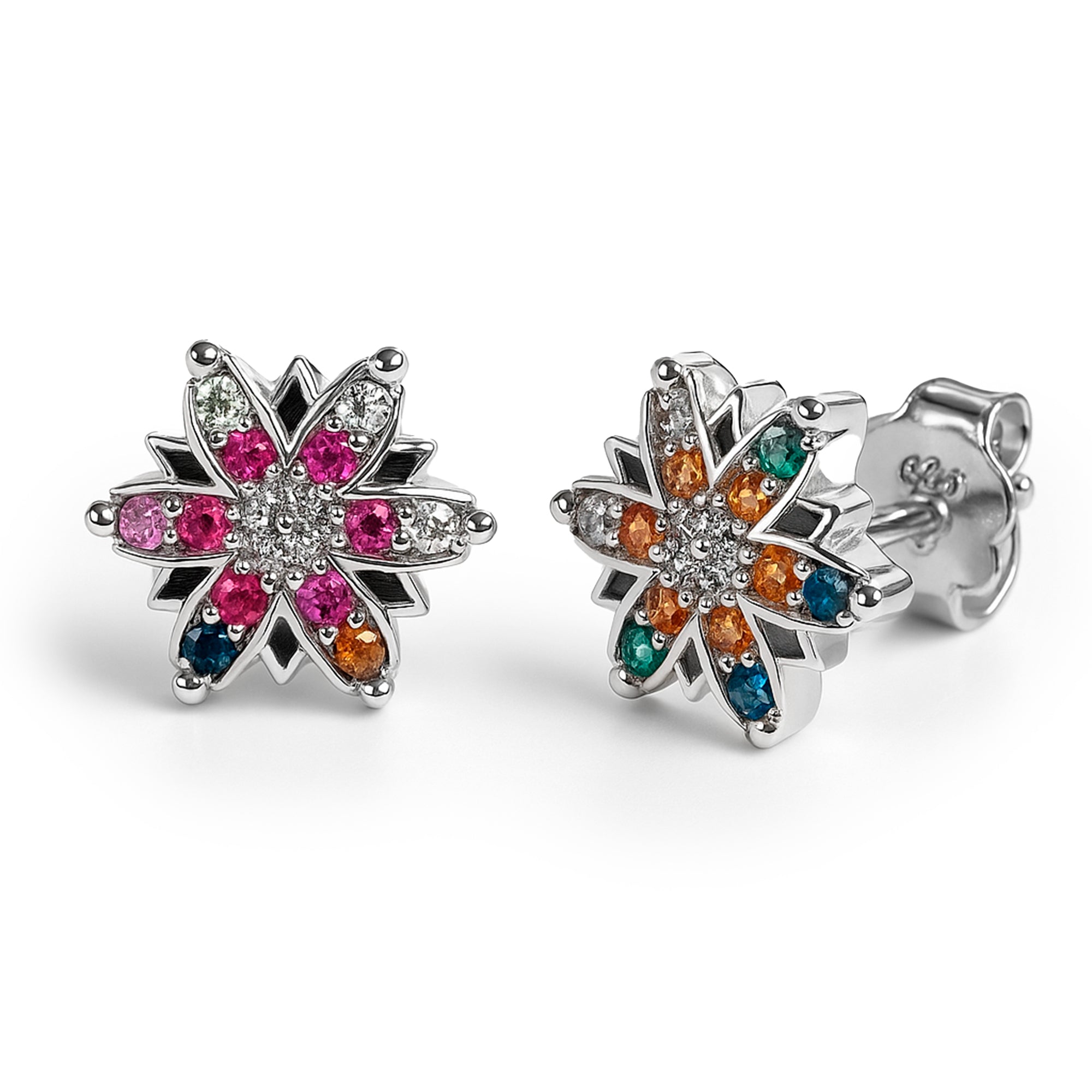 Broquel Florecita con Micro Circonias Plata .925 con Rodio blancas o multicolor