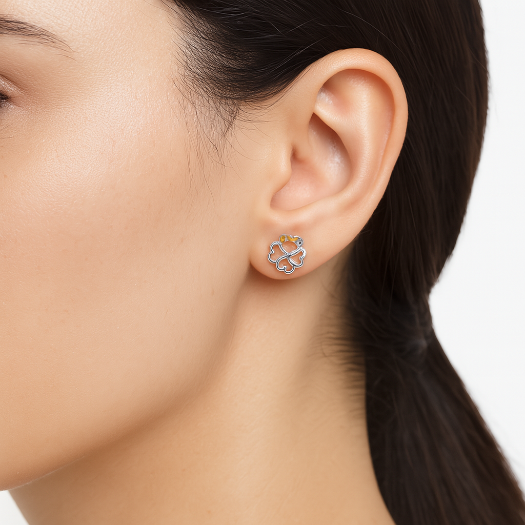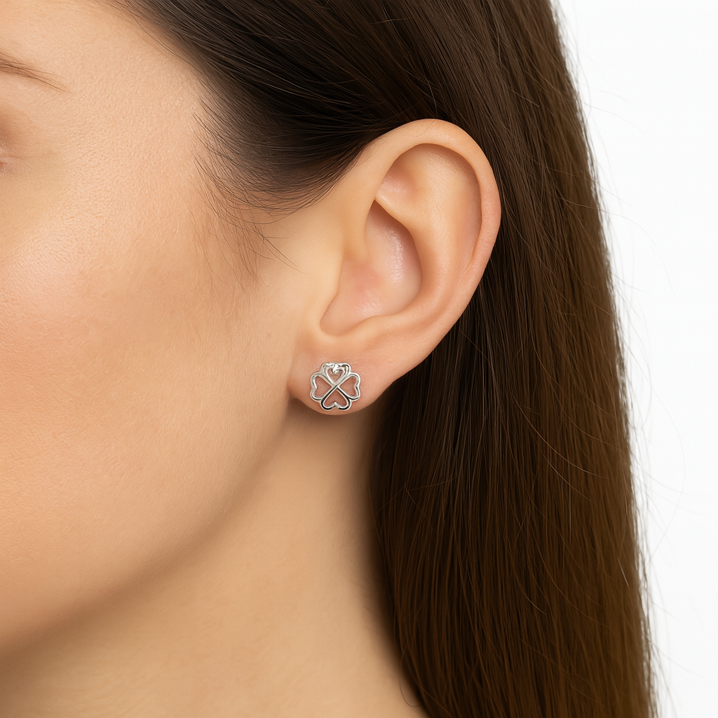 Broquel Silueta Trebol de 4 hojas con Micro Circonias multicolor o blancas Plata .925 con Rodio
