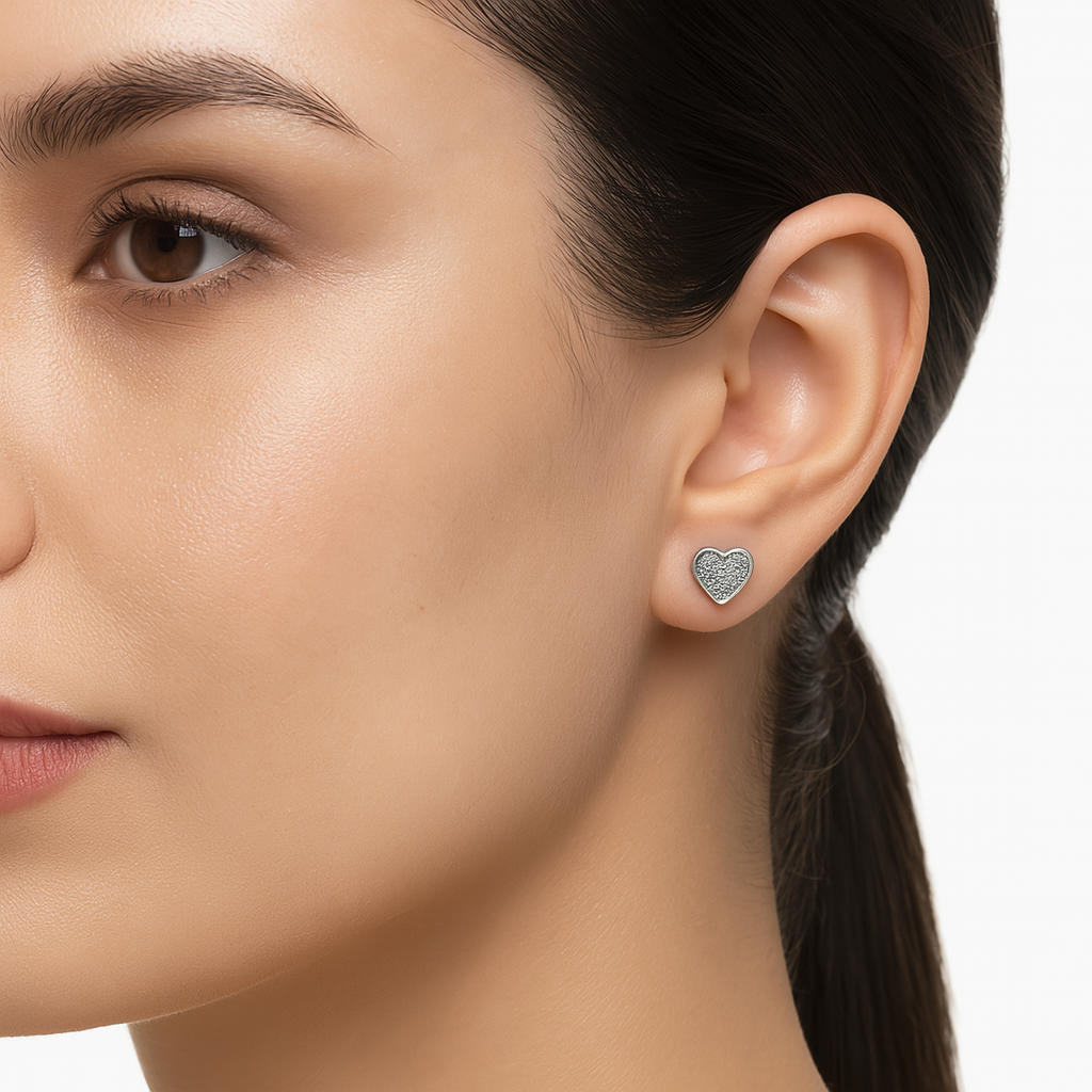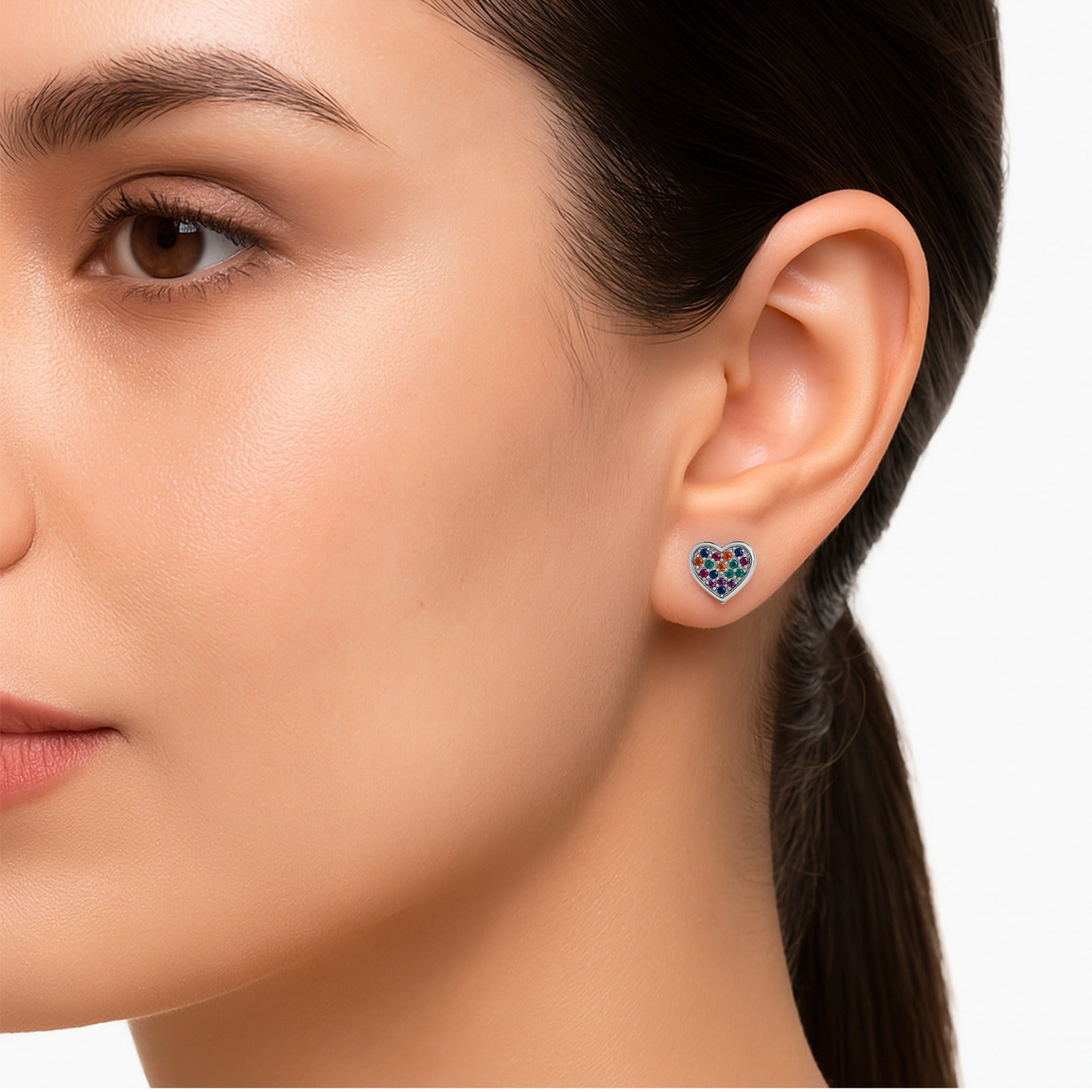Broquel Corazón Bombeado con Micro Circonias, Plata .925 con Rodio (disponible en blanco y multicolor)