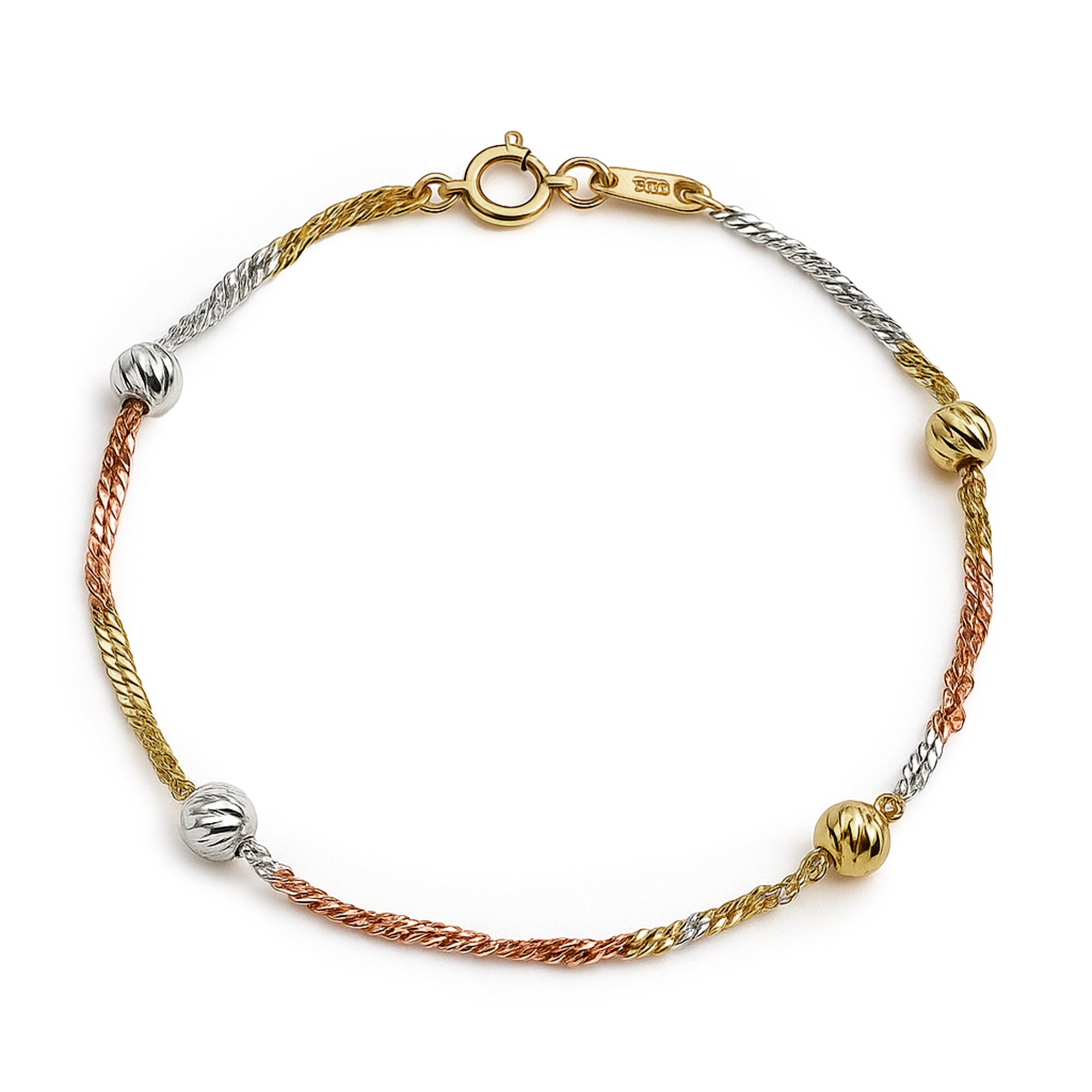 Pulsera Bolita Diamantada y Cadena Torzal Plata .925 con Baño de 3 Oros