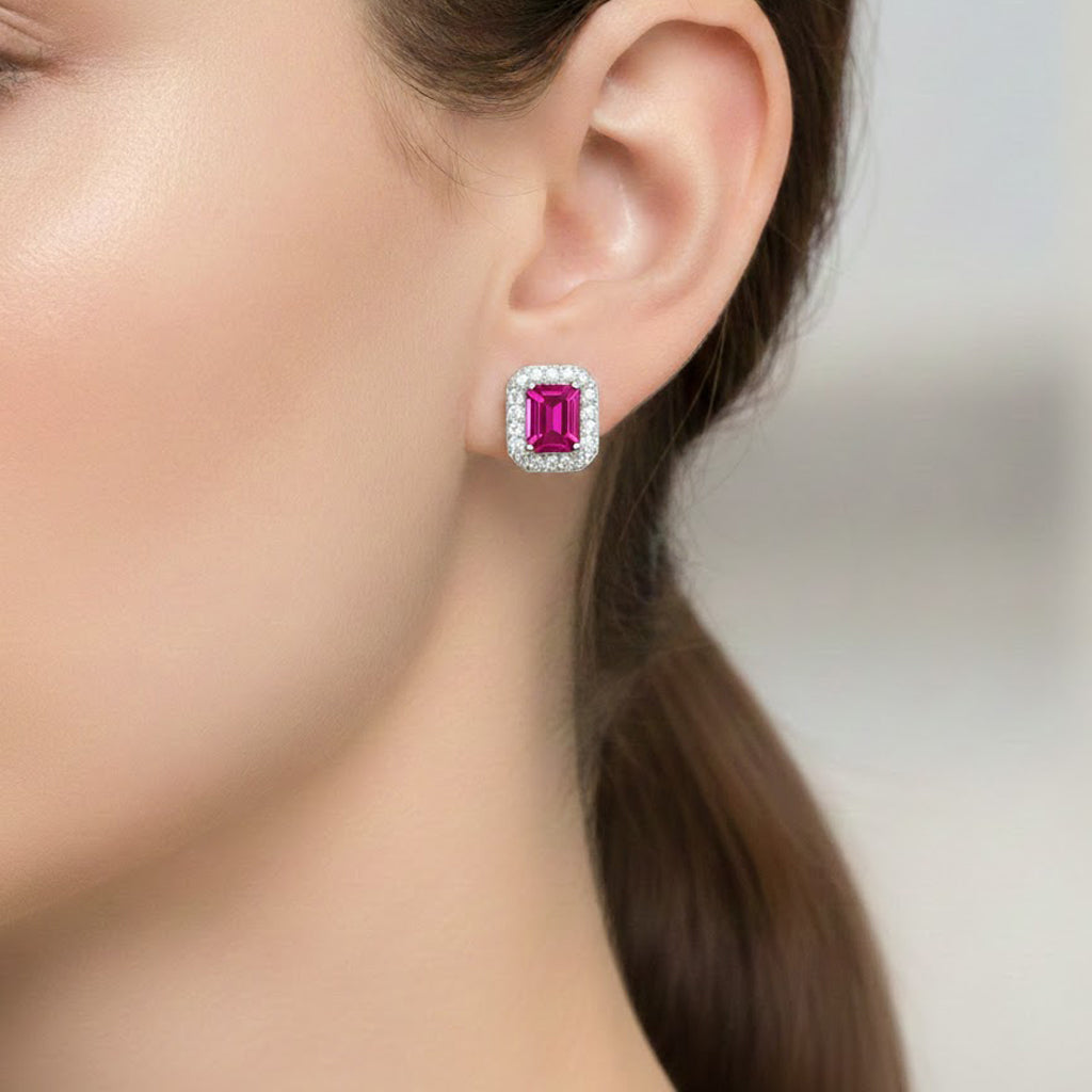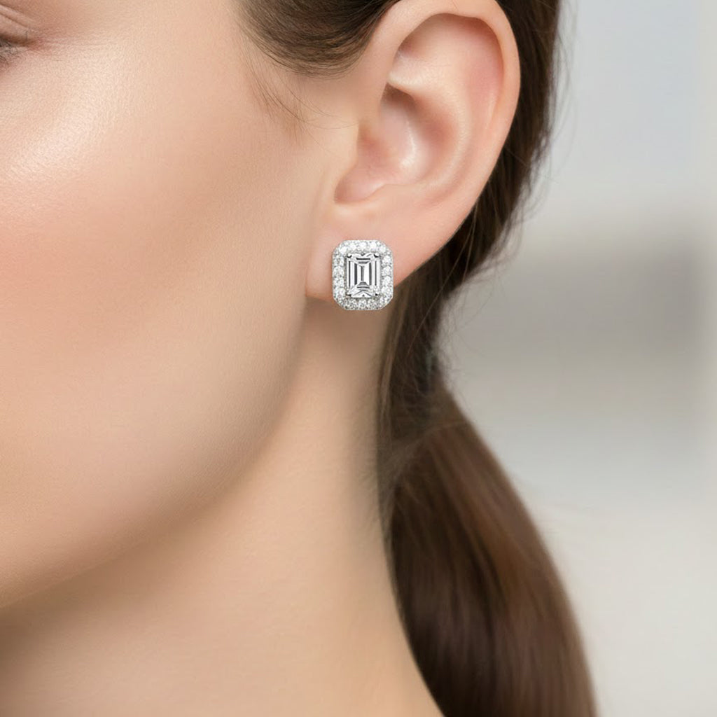 Broquel Circonia Rectangular Grande con Micro Circonias Plata .925 con Rodio, disponibles en blanco y rosa