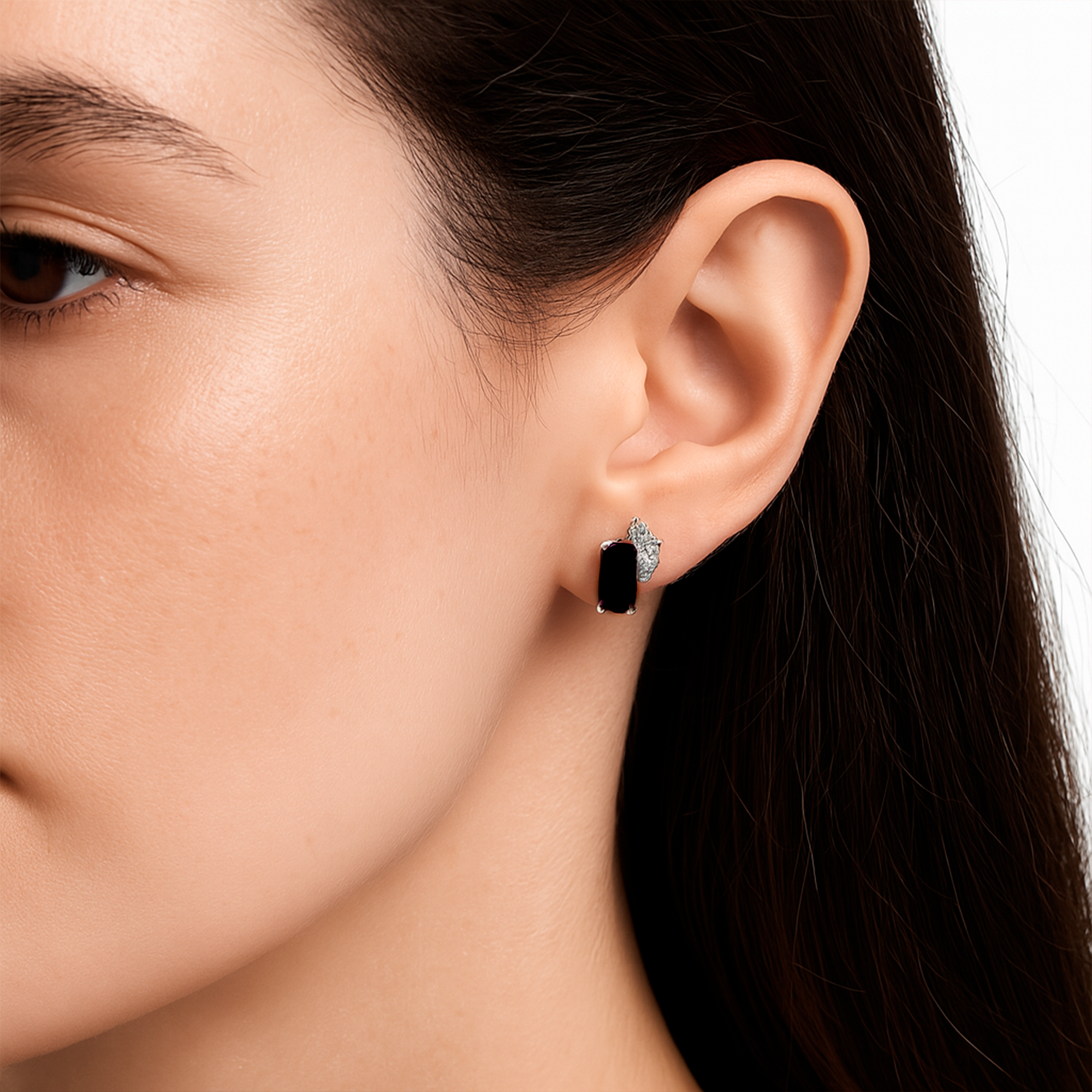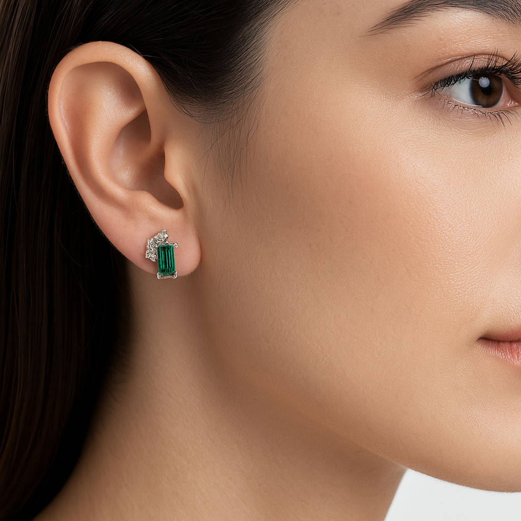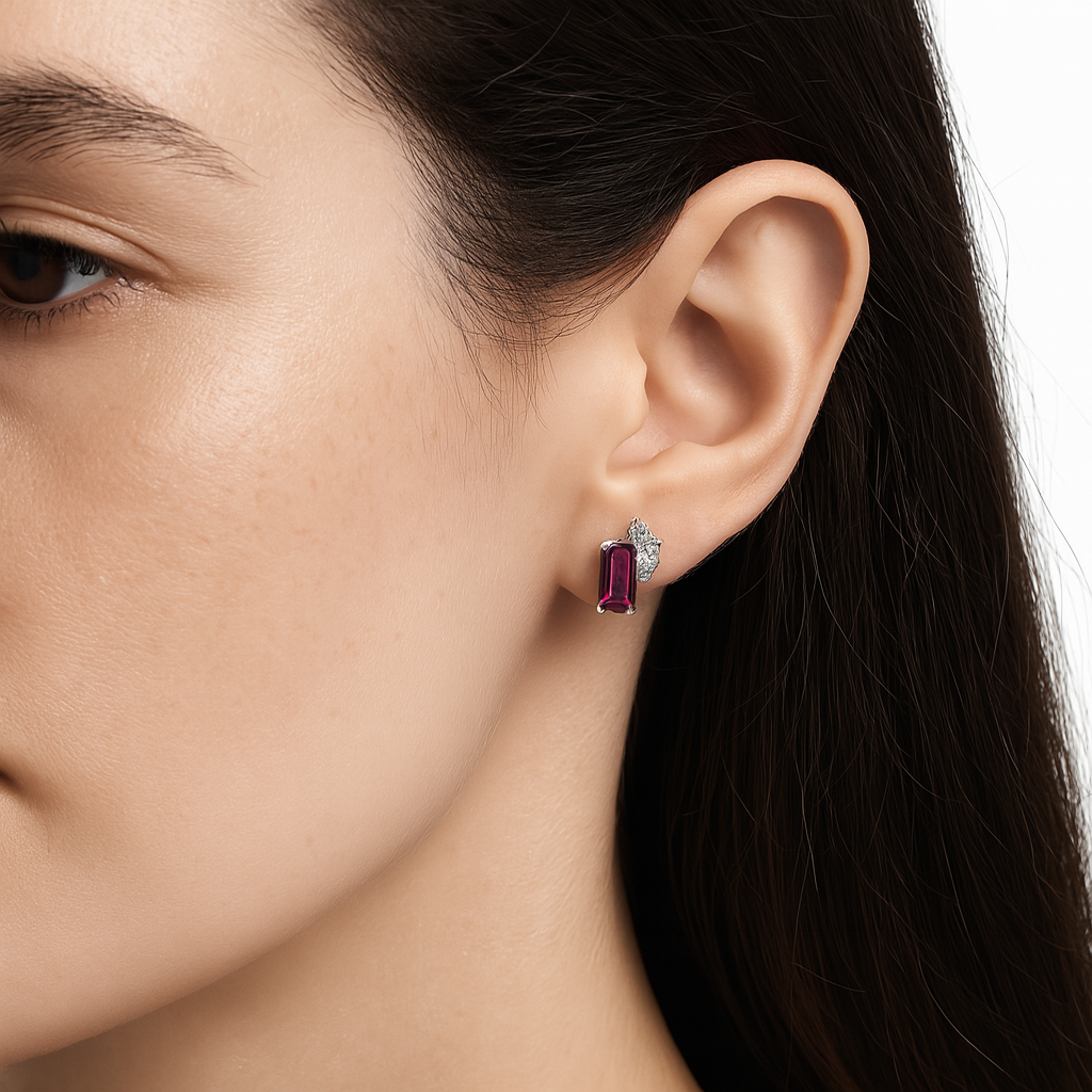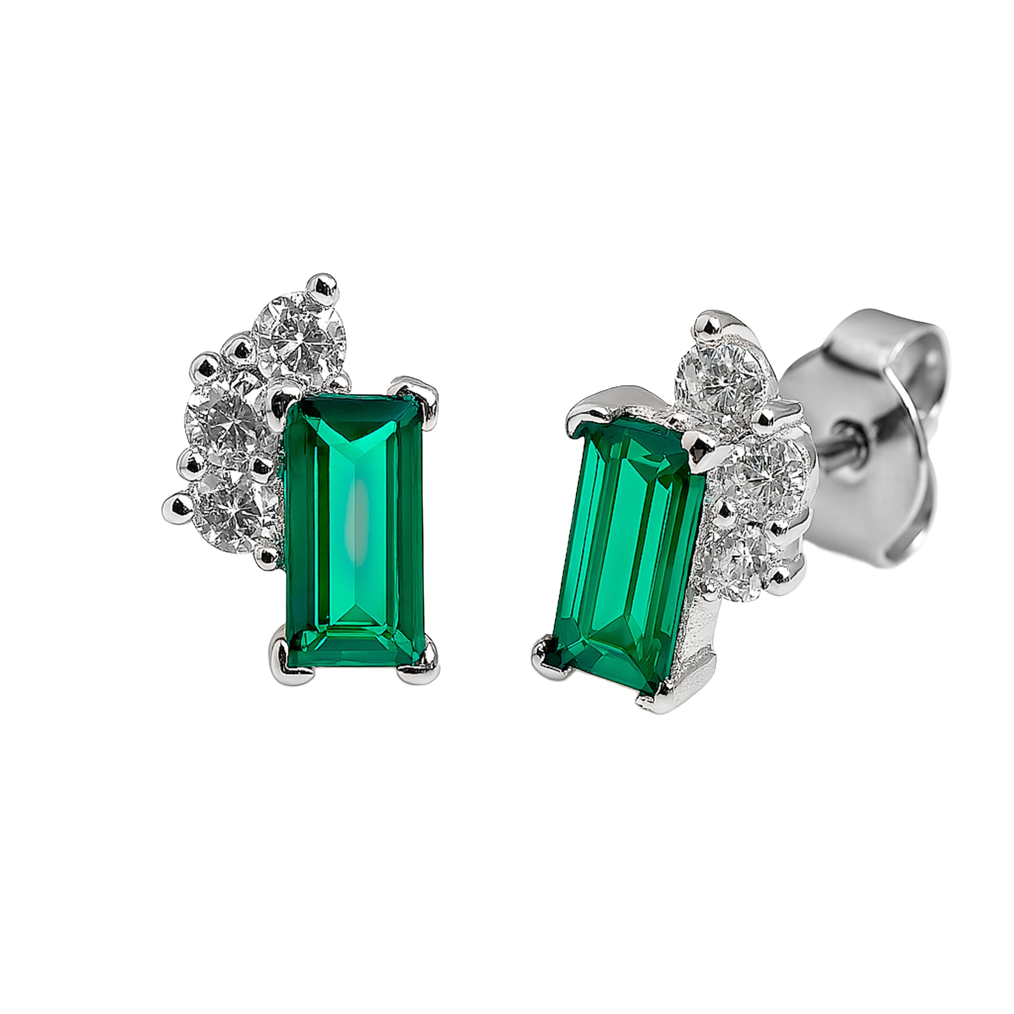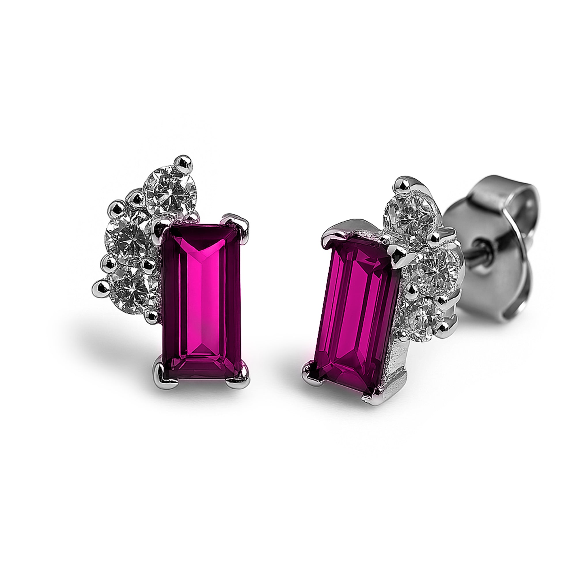 Broquel Rectangulo Circonia Baguette con 3 Circonias Redondas Plata .925 con Rodio, disponible en rosa, verde y negro