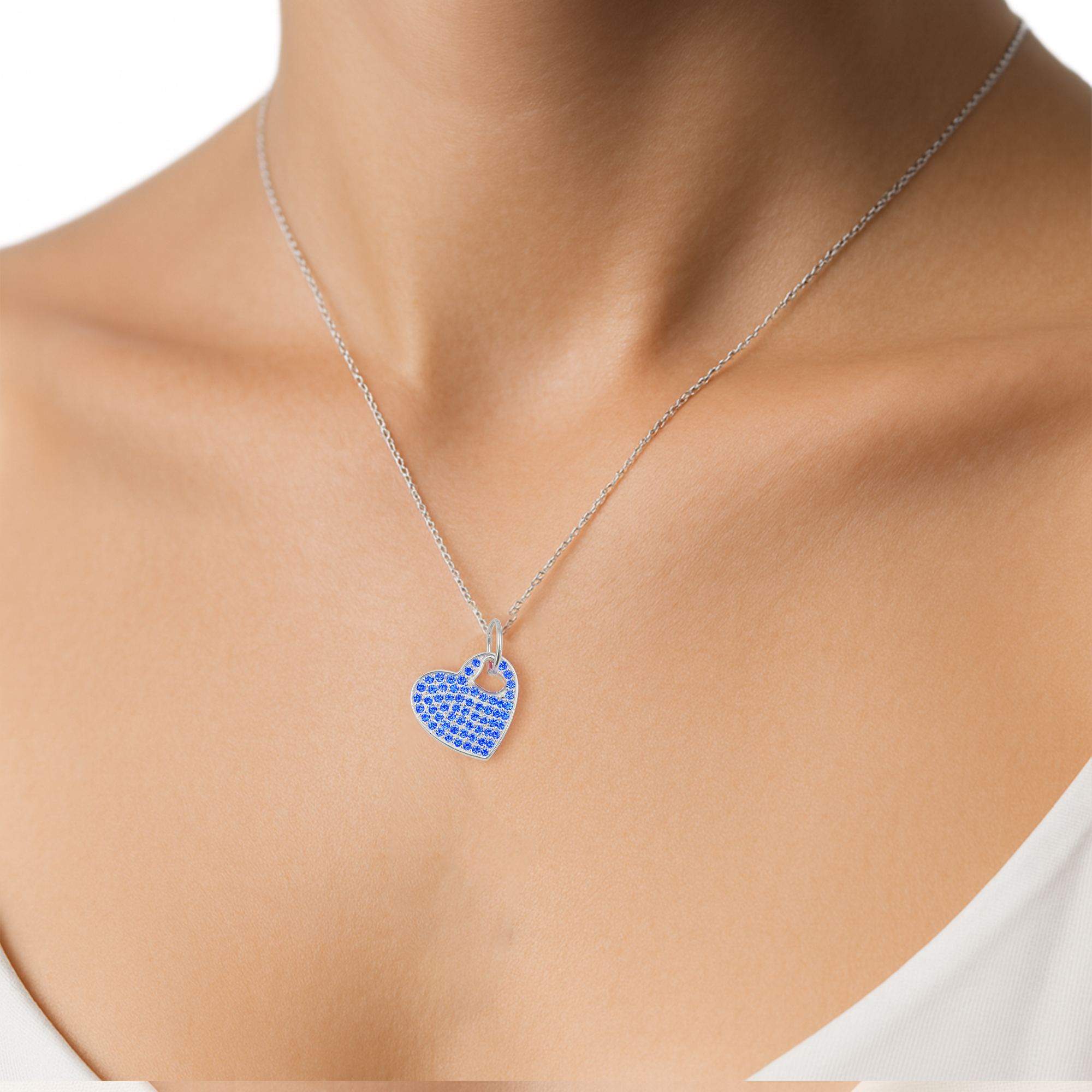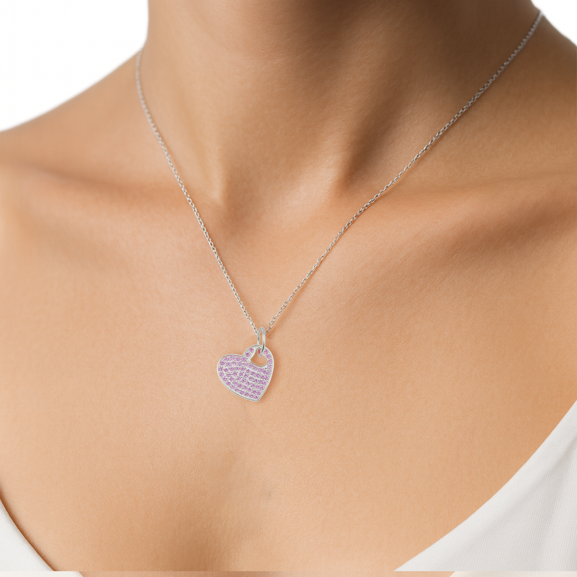 Dije de Corazón con Micro Circonias de 2.5cm Plata .925 Disponible en: Rosa, Negro, Naranja, Azul