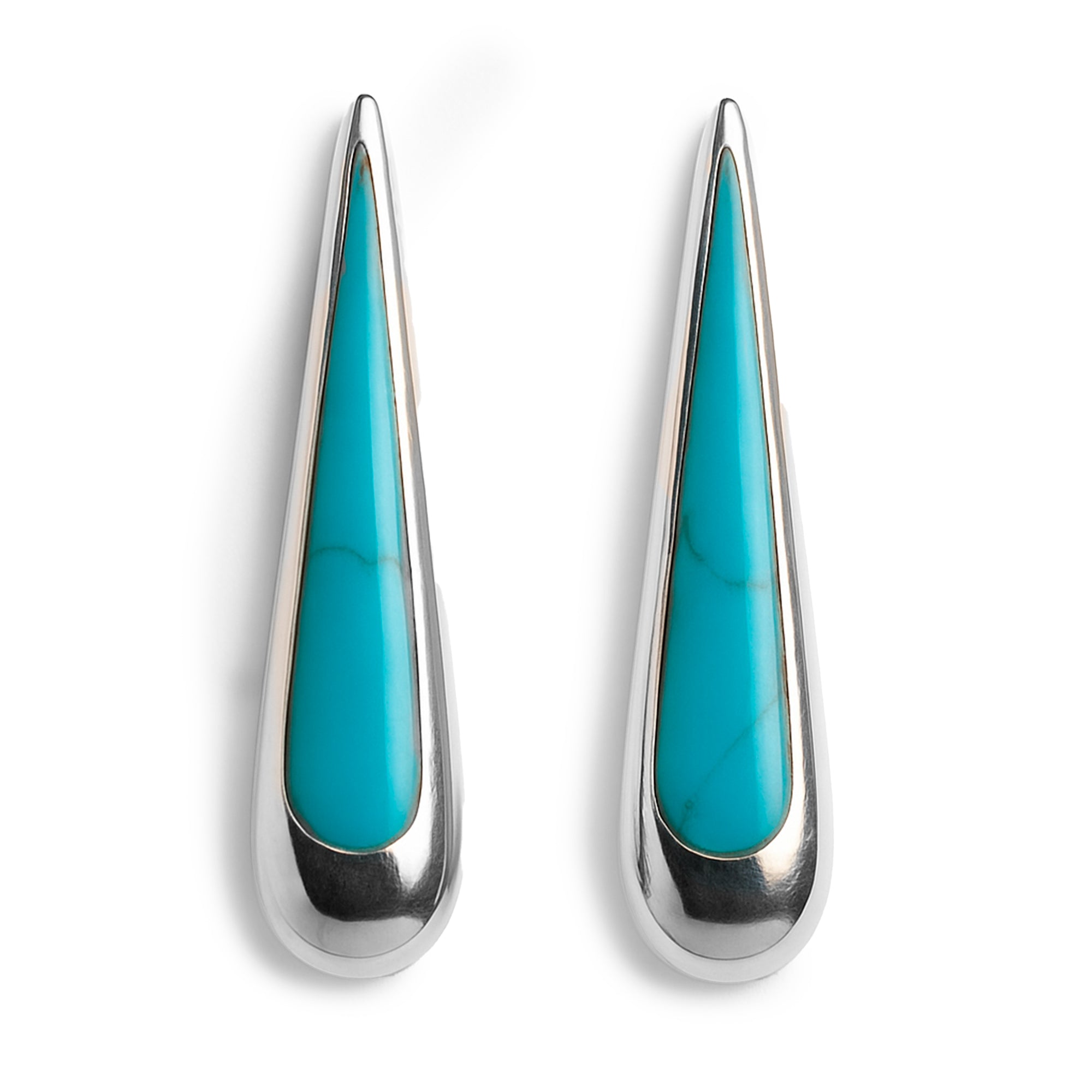 Arete Largo en Forma de Gota con Piedra Plata .925, disponible en turquesa y multicolor