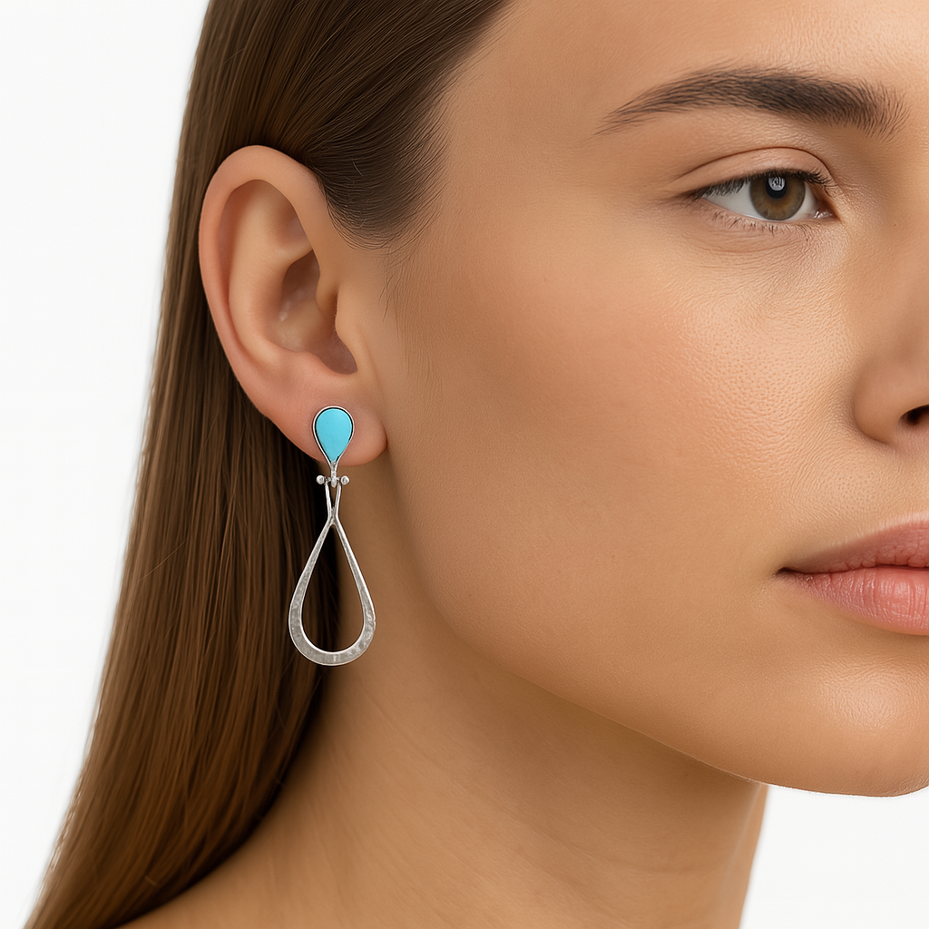 Arete Largo Estilo Gota con Piedras Naturales Plata .925, disponibles en diferentes colores
