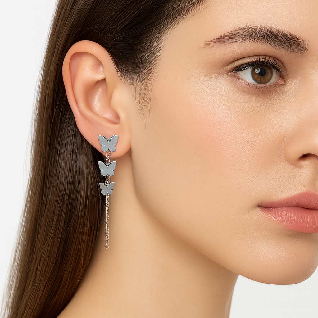 Arete Largo Mariposa Lisa con Cadena Cubana Hecho a Mano Plata .925