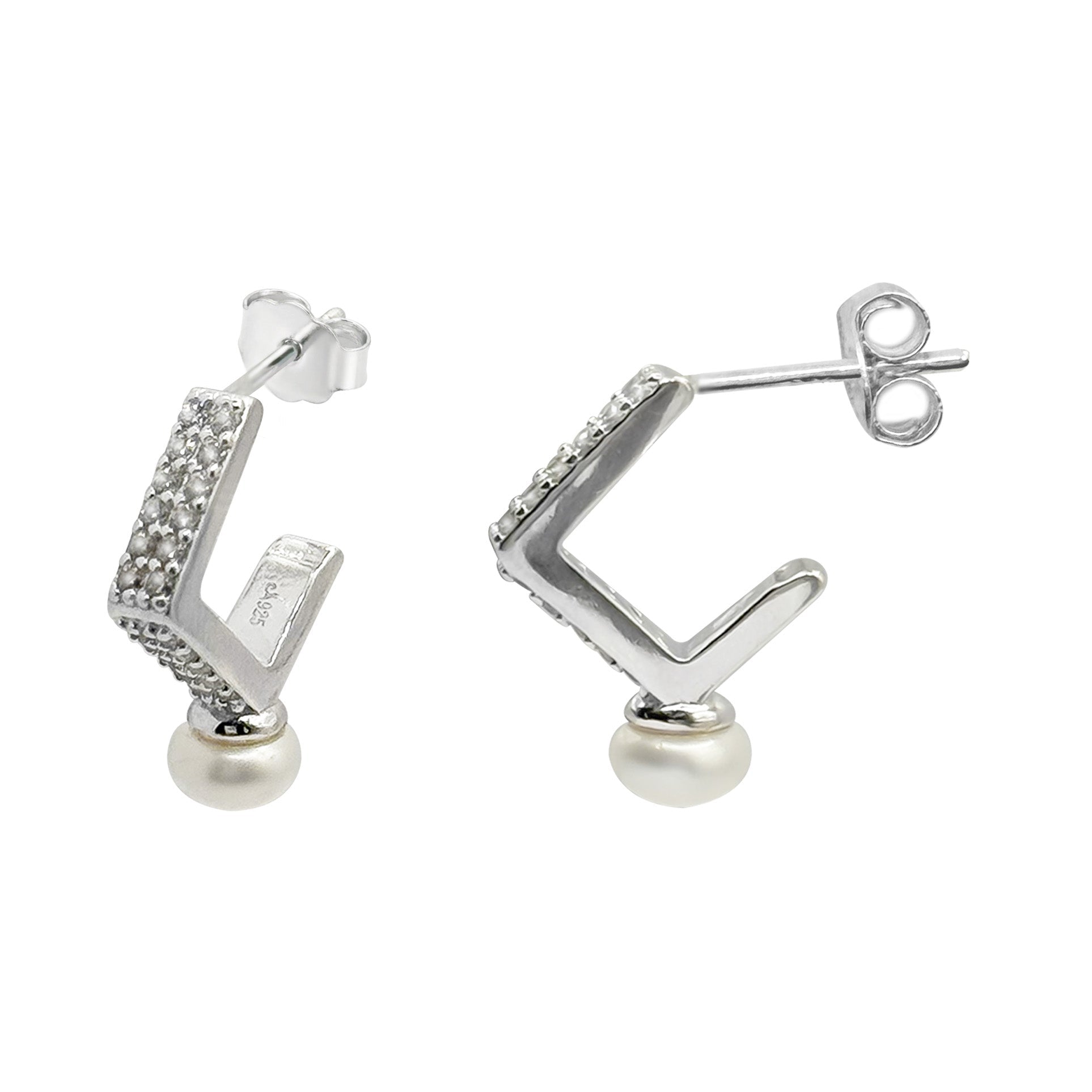Arracada con Micro Circonias y Perla Natural Plata .925 con Rodio