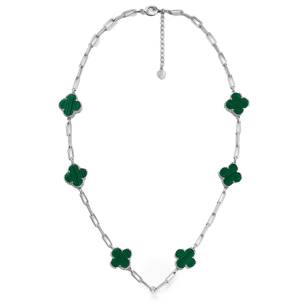 Collar Flores Inspirado Van C Piedras Naturales con Cadena Paper Clip Plata .925 con Rodio mas Extensión Disponible en: Madre Perla y Verde Malaquita Descargar Imagen