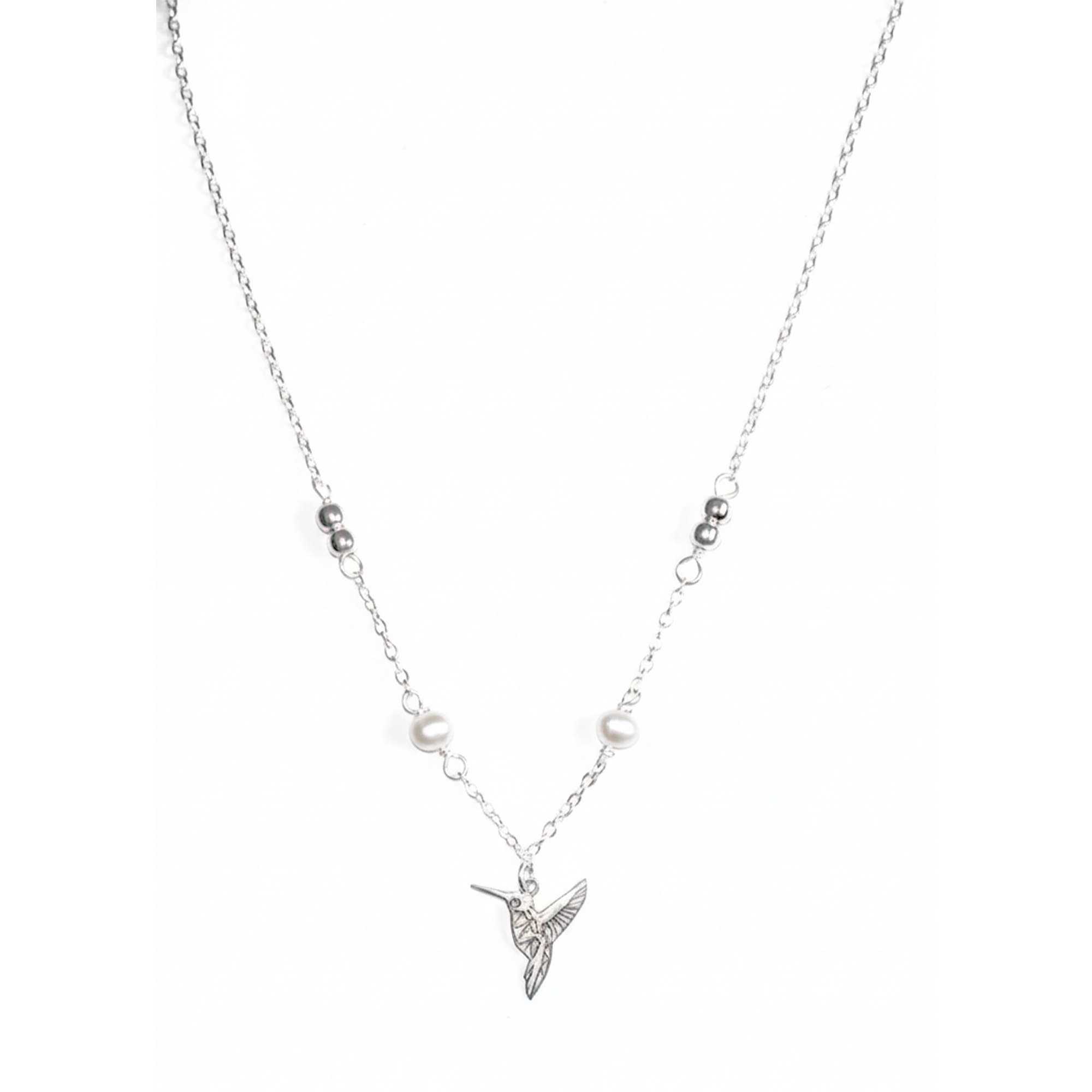Collar Perla Natural con Dije de Colibri Calado y Cadena Eslabones Plata .925 mas Extensión