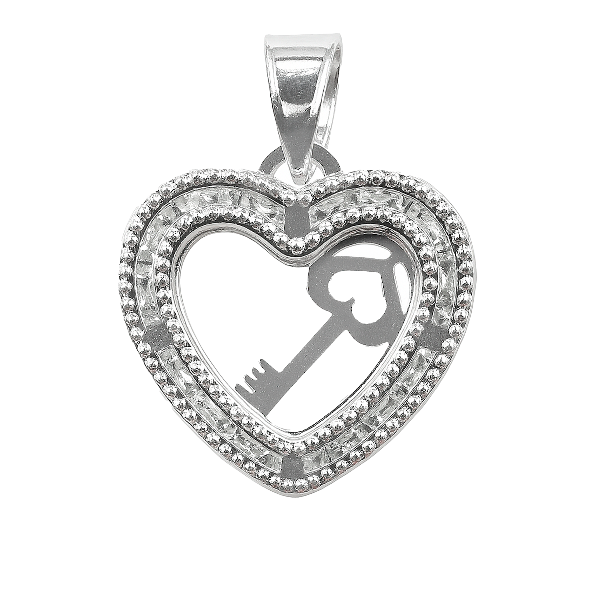 Dije de Corazón con Circonias y Llave 2.7cm Plata .925