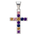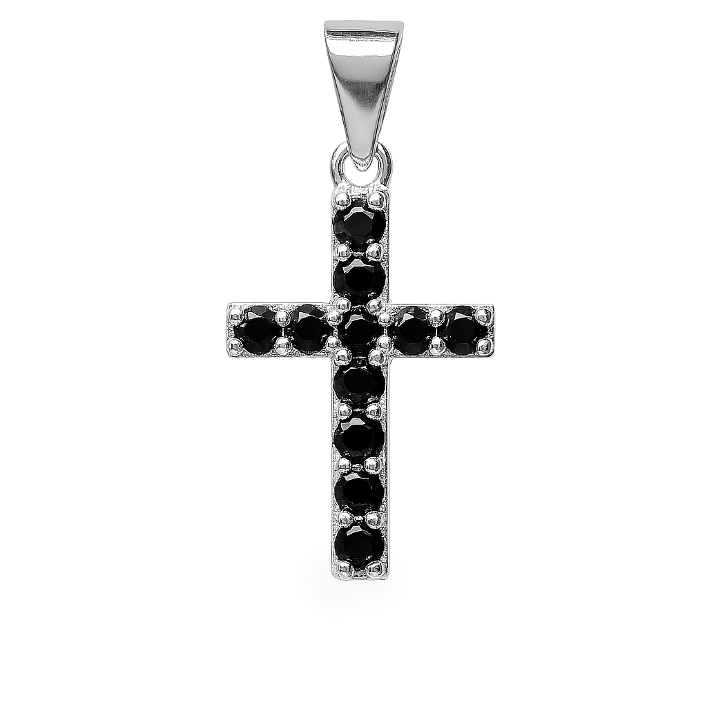 Dije Cruz Doble Vista con Circonias 2.4cm Plata .925. Disponible en: Negro con Blanco y Multicolor con Blanco