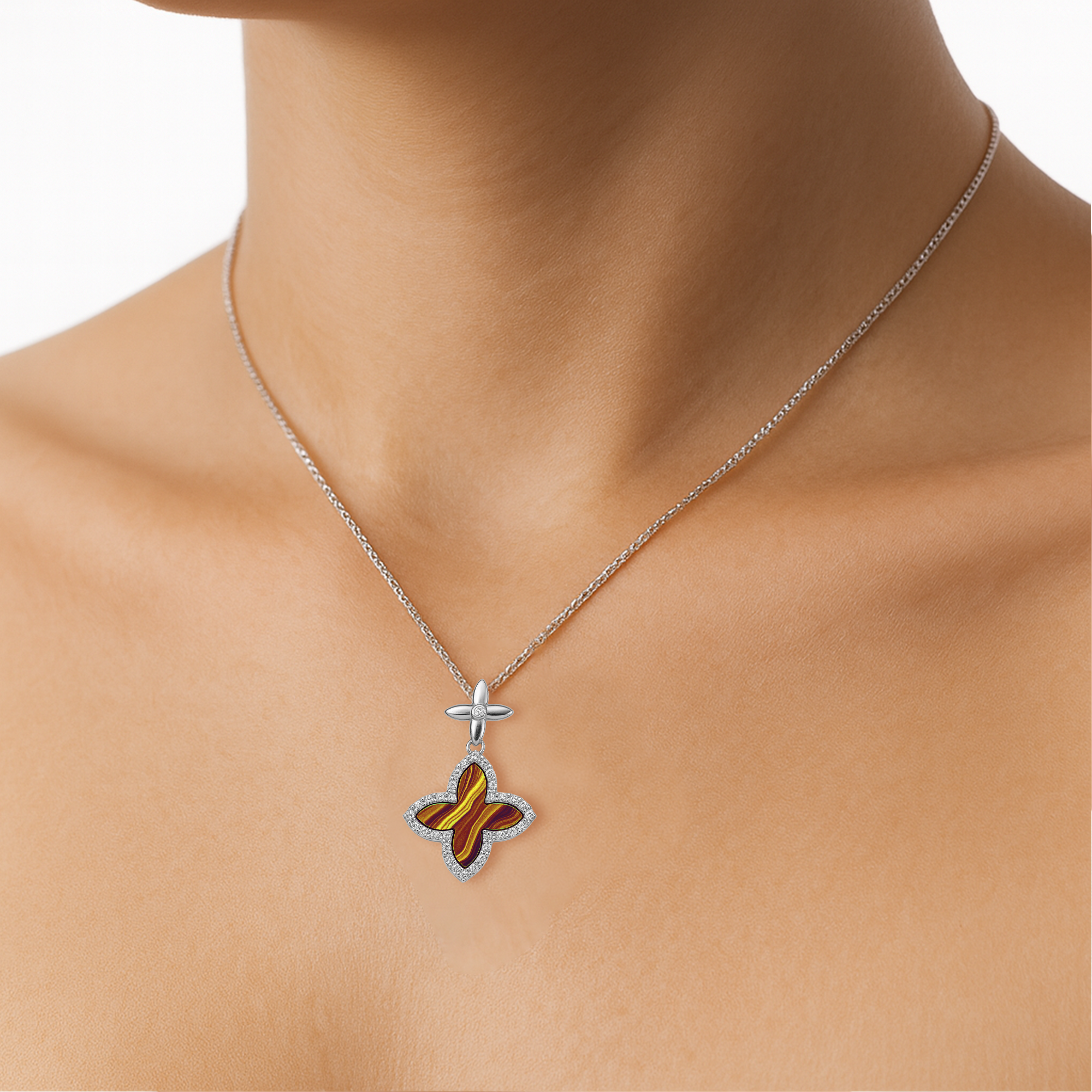 Dije Inspirado LV de 2.5cm con Piedras Naturales y Circonias Plata .925 con Rodio Disponible en: Madre Perla, Ágata Comprimida, Verde Malaquita, Negro Ónix, Ojo de TigreDescargar Imagen