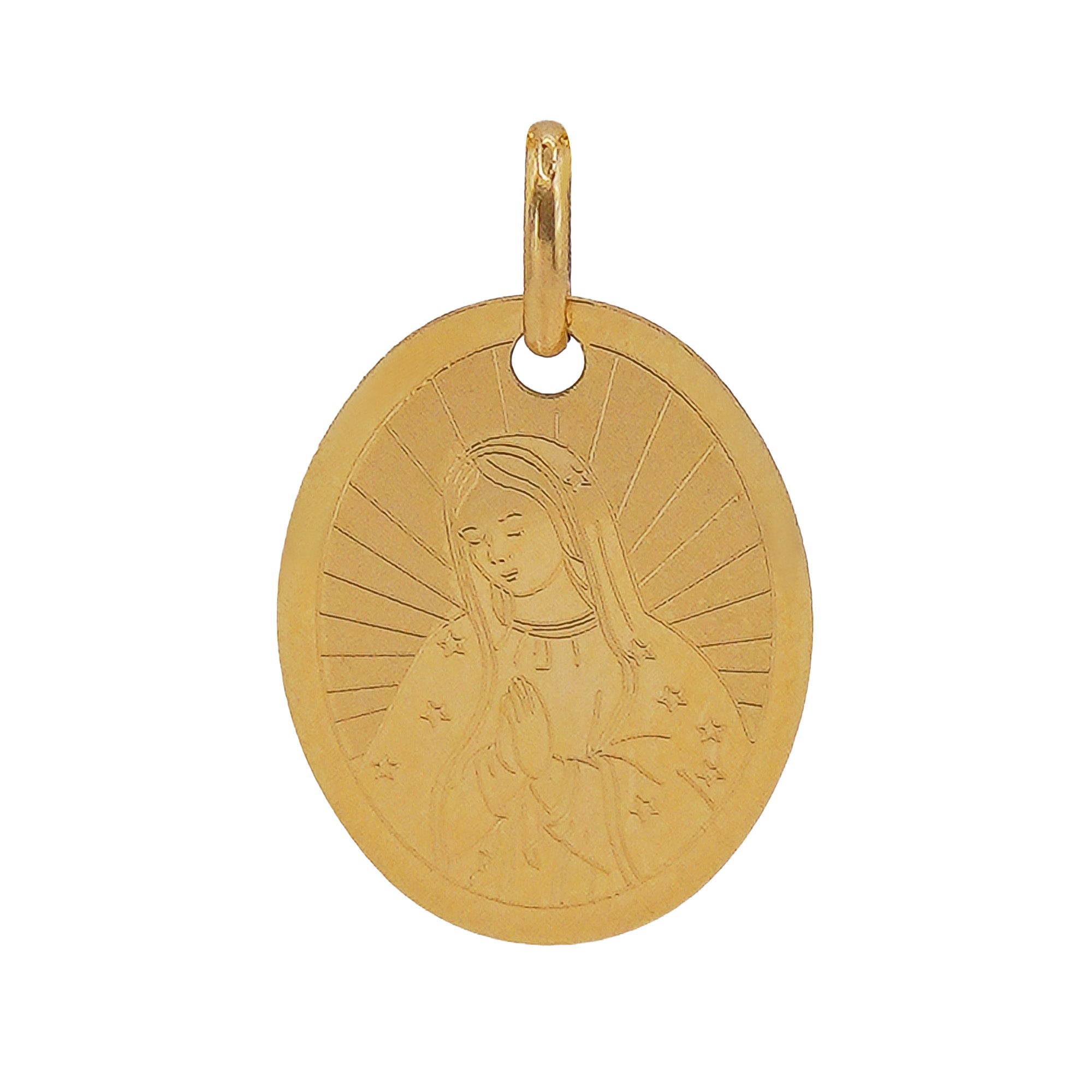 Dije Medalla Ovalada con la Virgen de Guadalupe Oro 14K