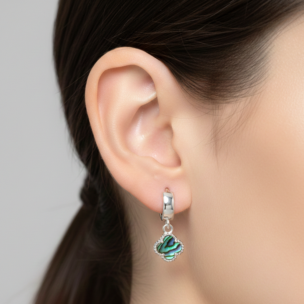 Huggies Inspirado Van C Piedra Natural Plata .925, disponible en Abulón y Agata Comprimida