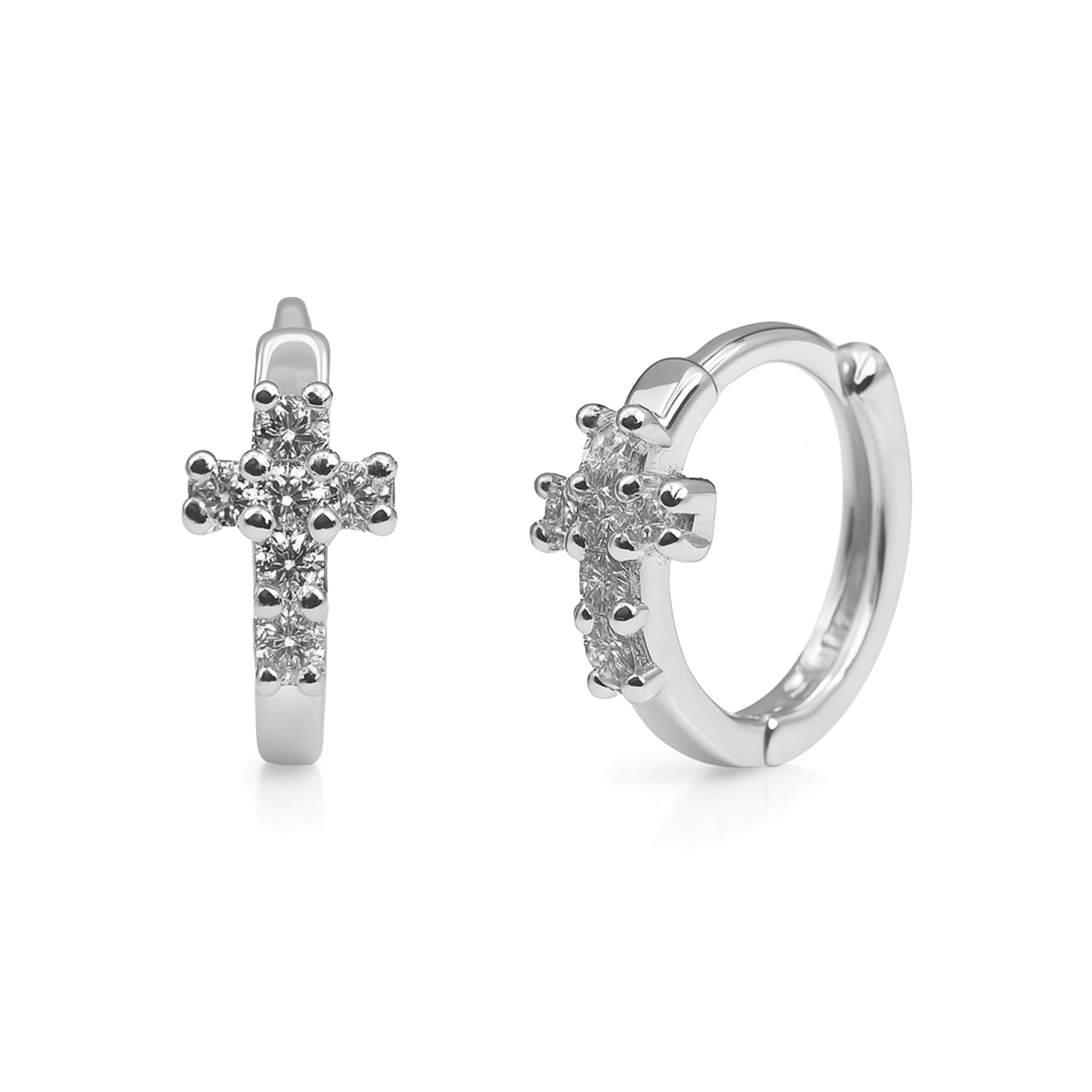 Huggies Chica de Cruz con Micro Circonias Plata .925. Tamaño: 1 cm