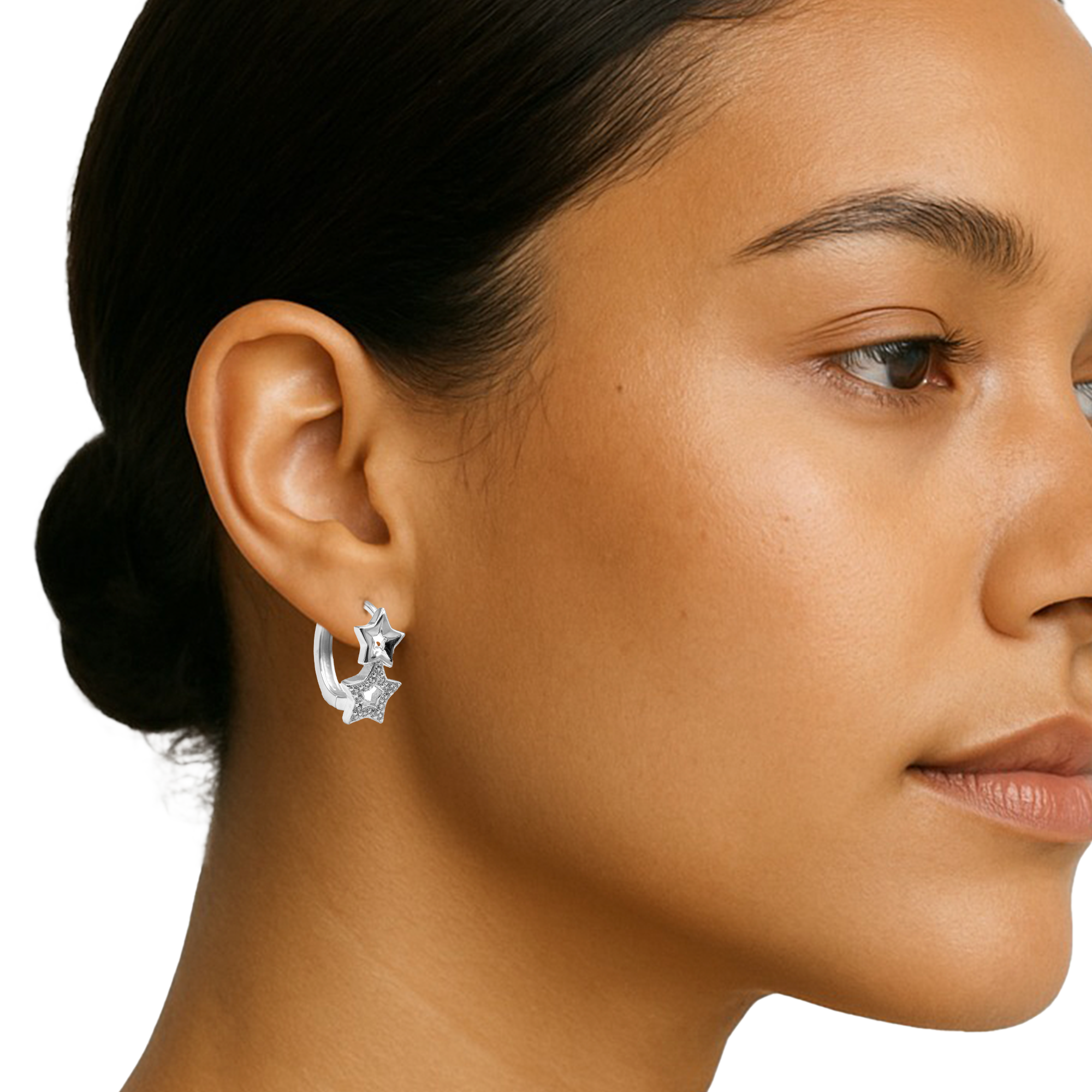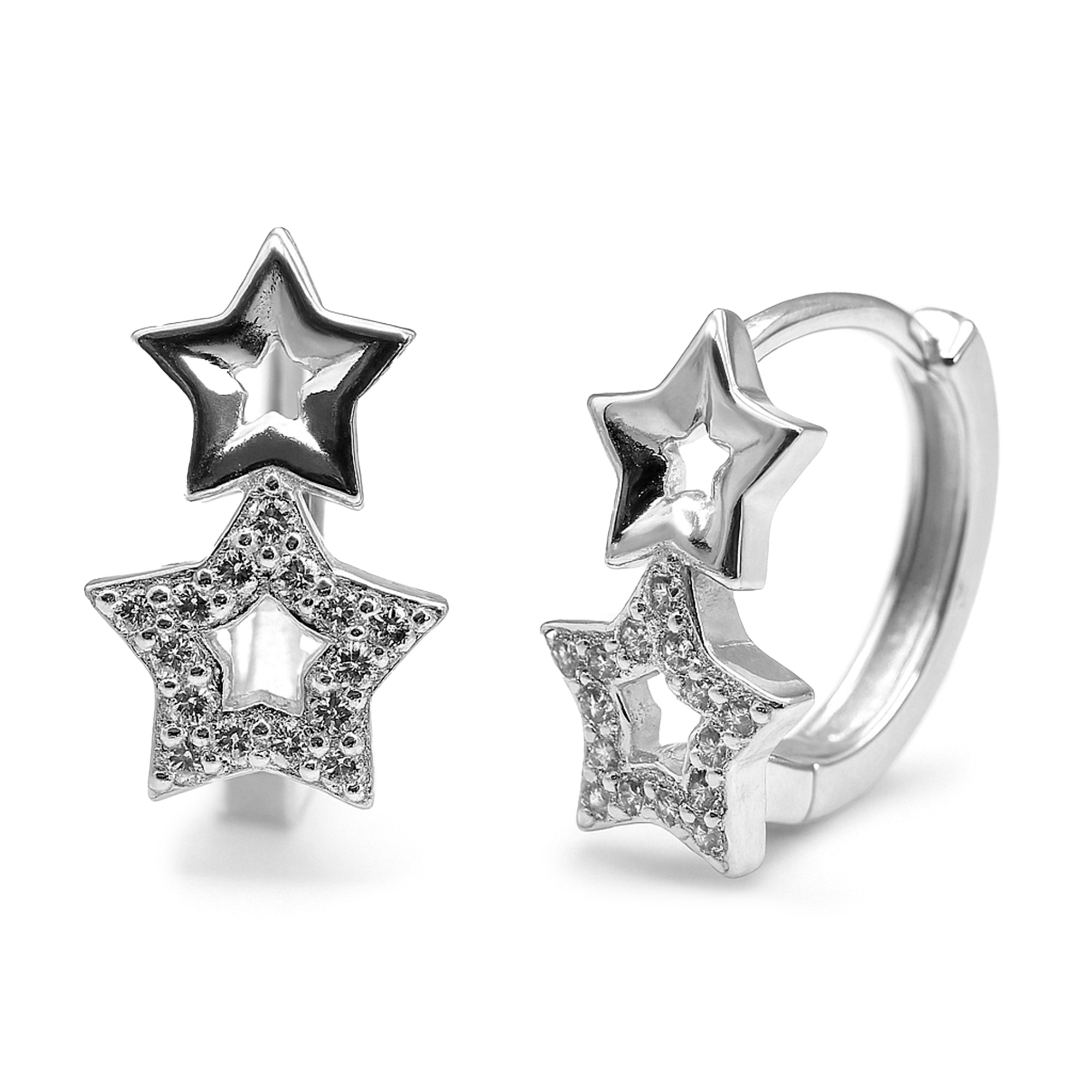 Huggies Doble Estrella Lisa y Micro Circonia Plata .925Descargar Imagen