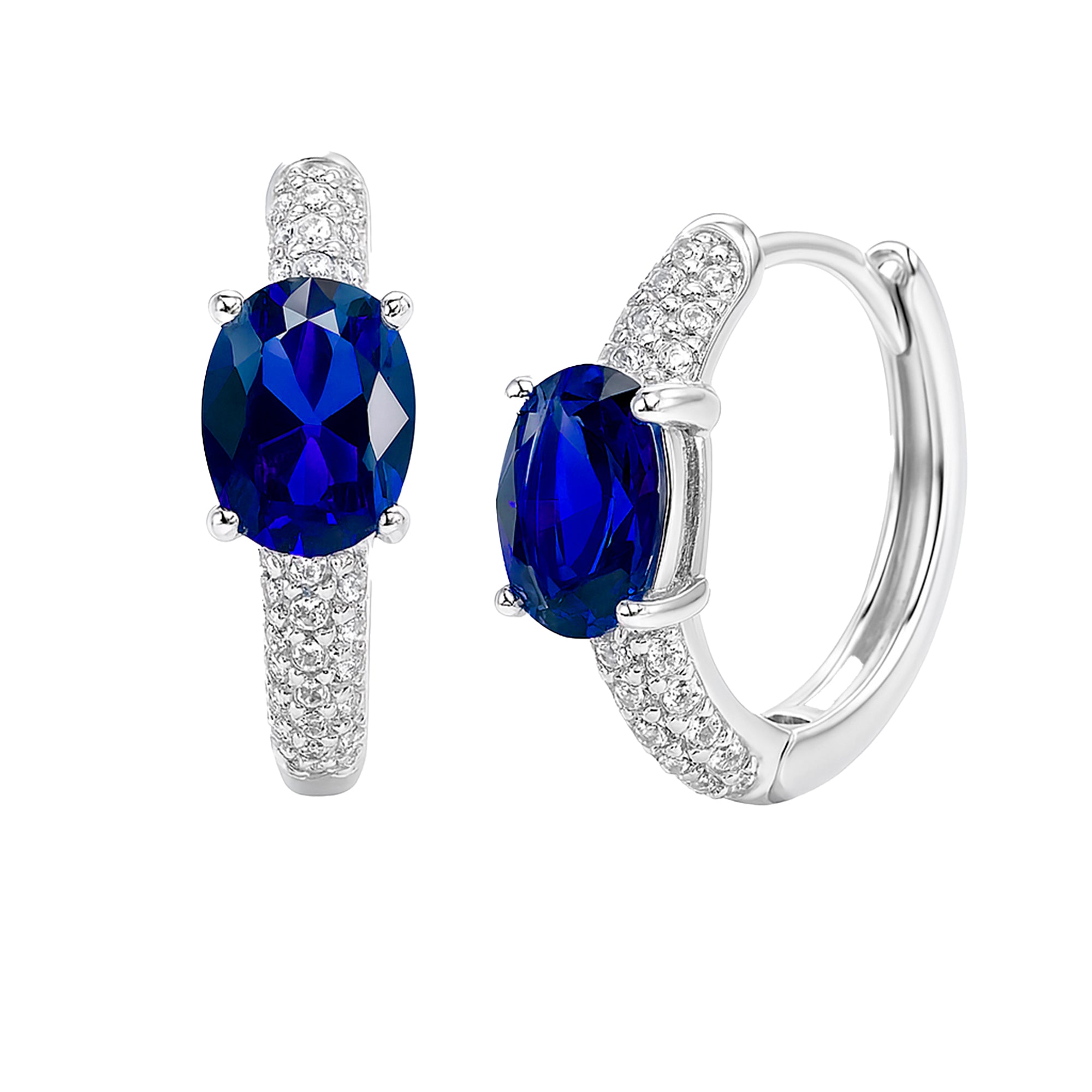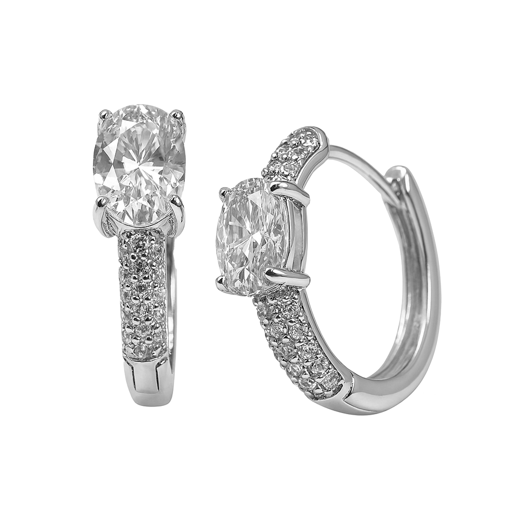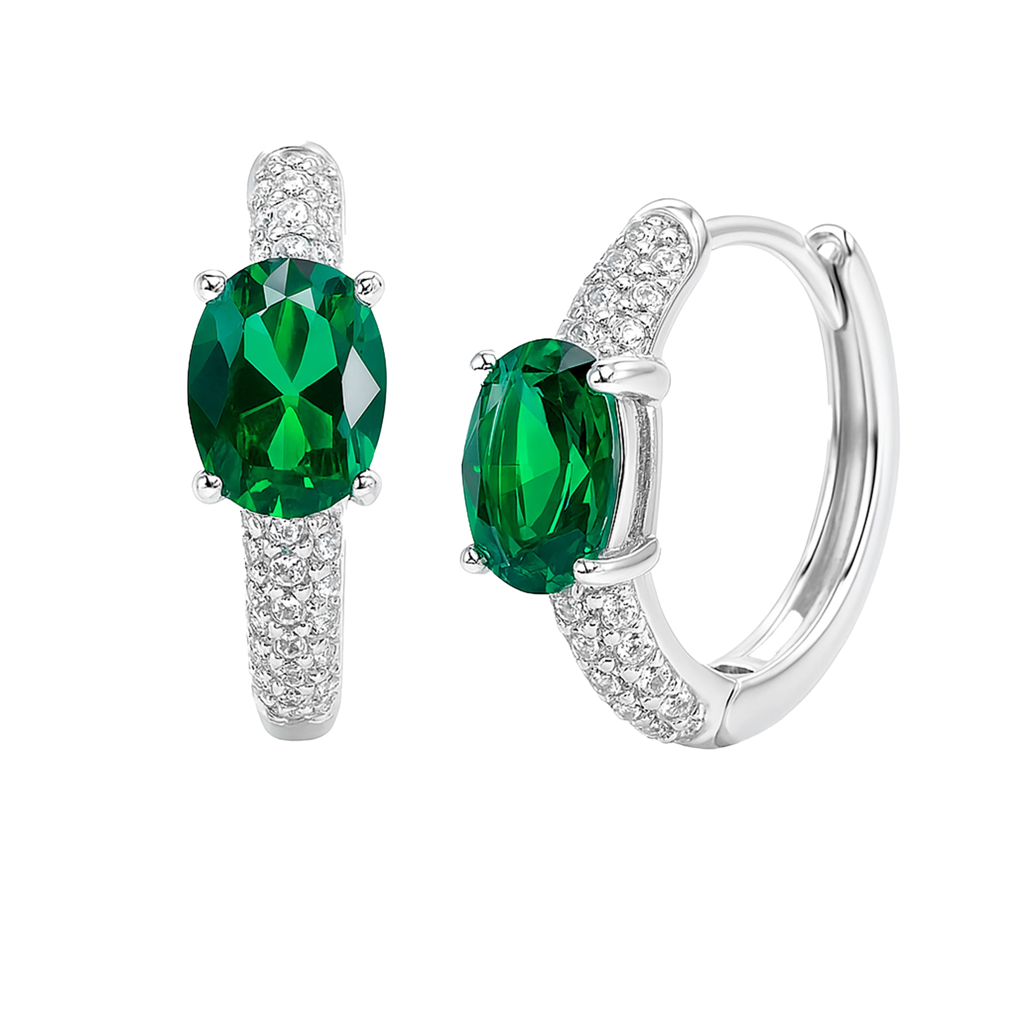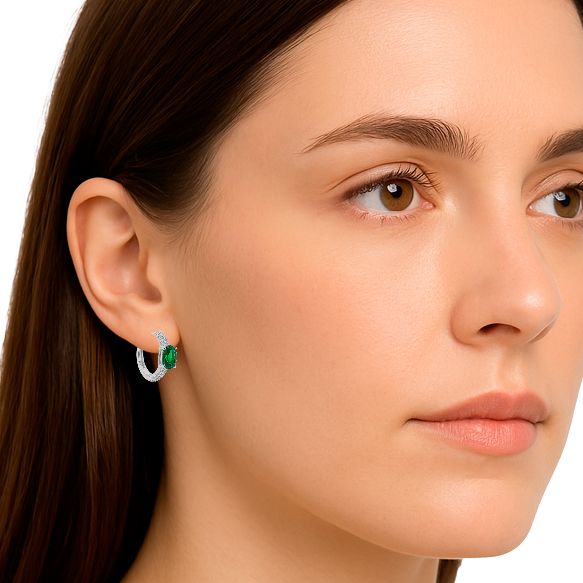 Huggies con Circonia Grande y Micro Circonias Plata .925 con Rodio, perfecto para ocasiones especiales. Disponible en blanco, verde, azul y rojo.
