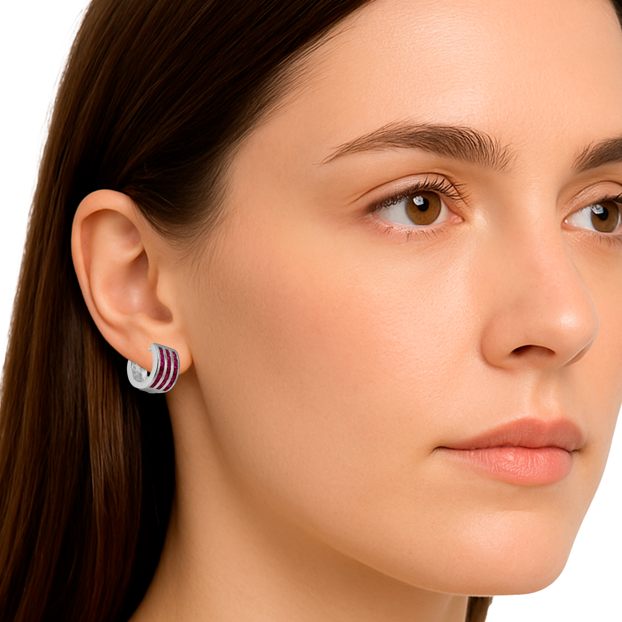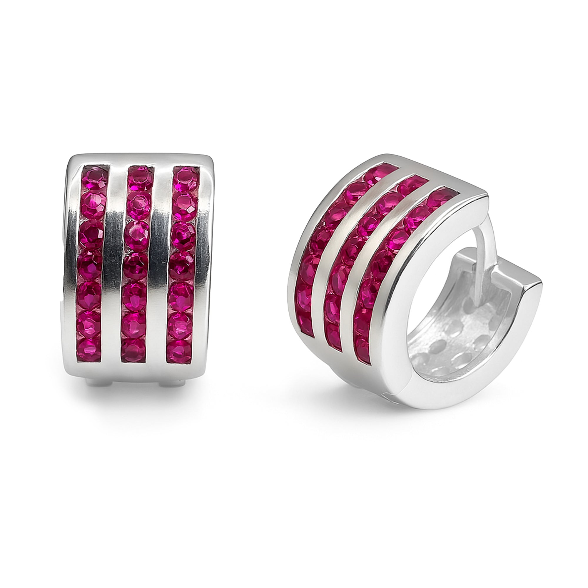 Huggies Ancha con 3 Lineas de Circonias Plata .925 rosa fucsia, dale un toque divertido a tus días con este diseño