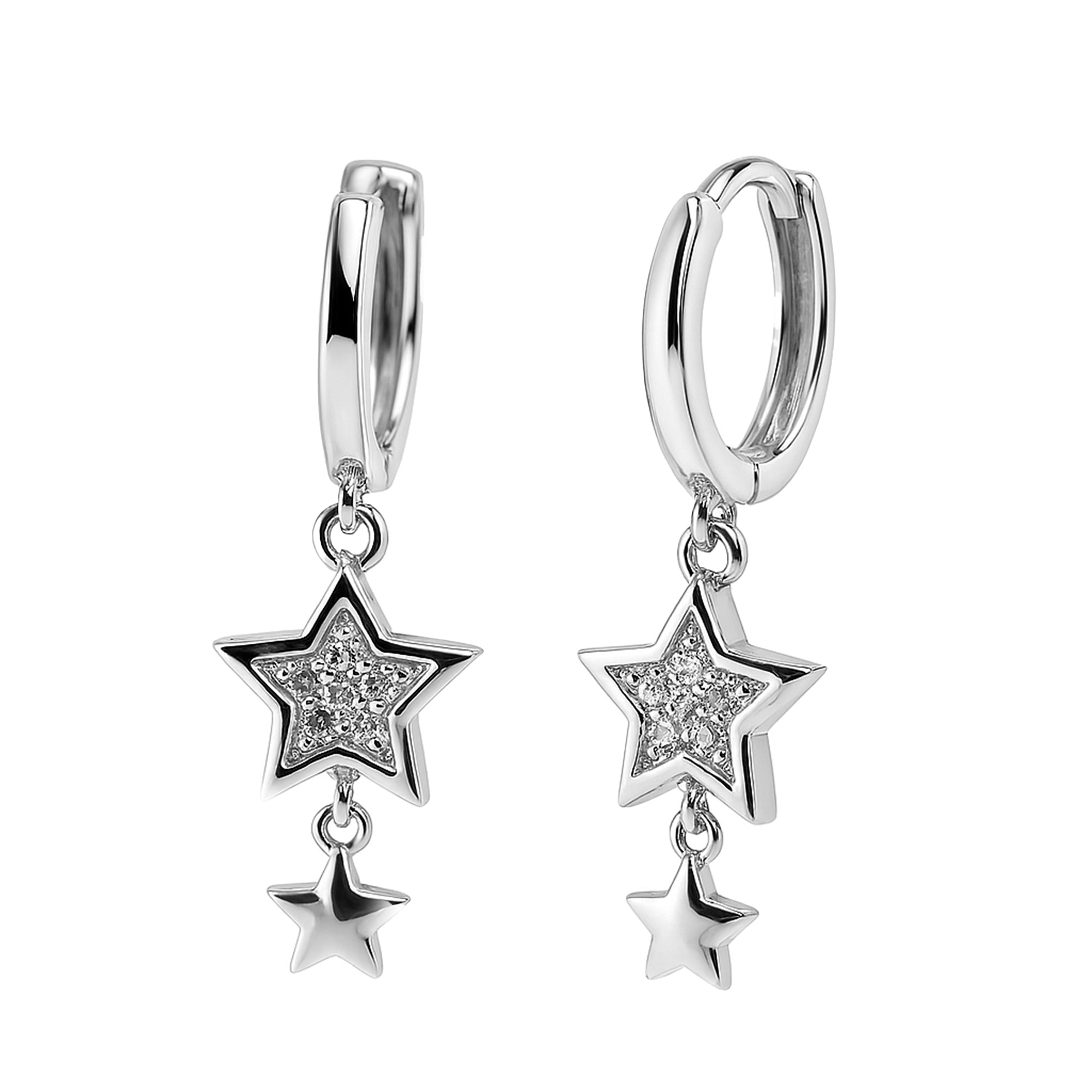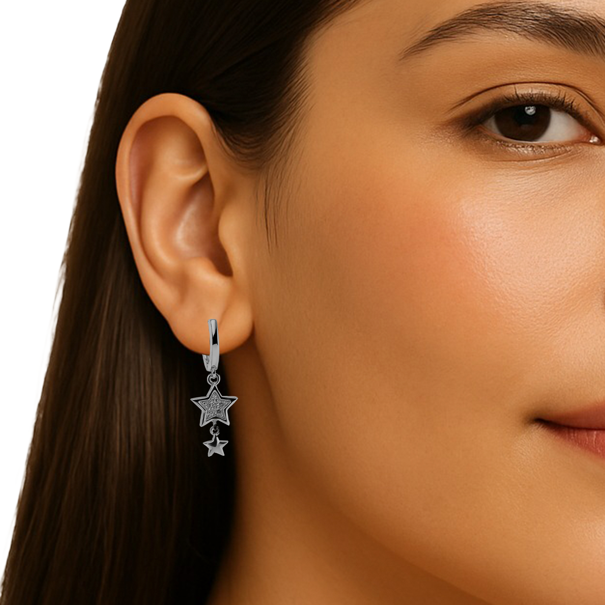 Huggies Estrella Colgante con Micro Circonias Plata .925, ideales para darle un twist a tu estiloDescargar Imagen