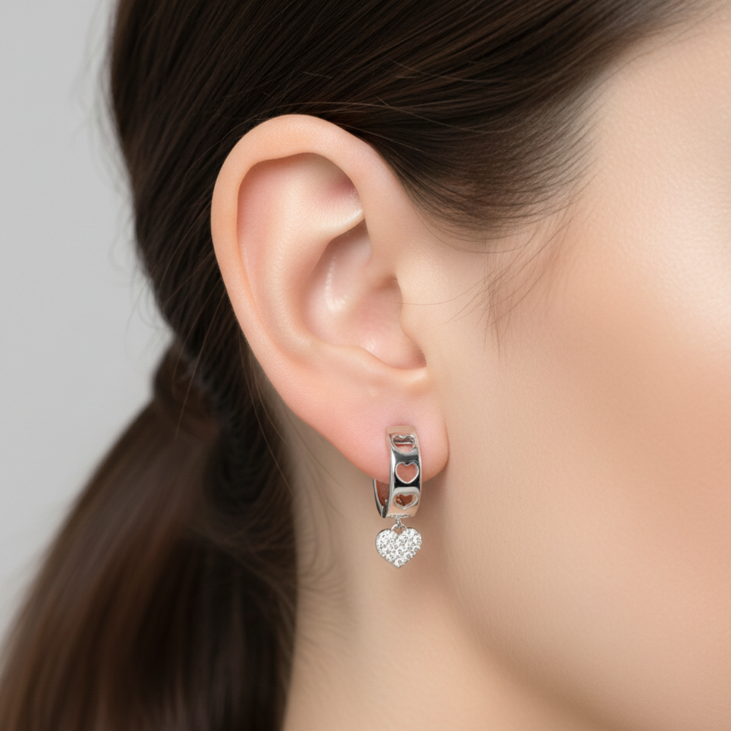 Huggies Corazon Colgante con Micro Circonias Plata .925, huggies casuales que brindan alegría y romanticismo a tu día, excelentes para regalo