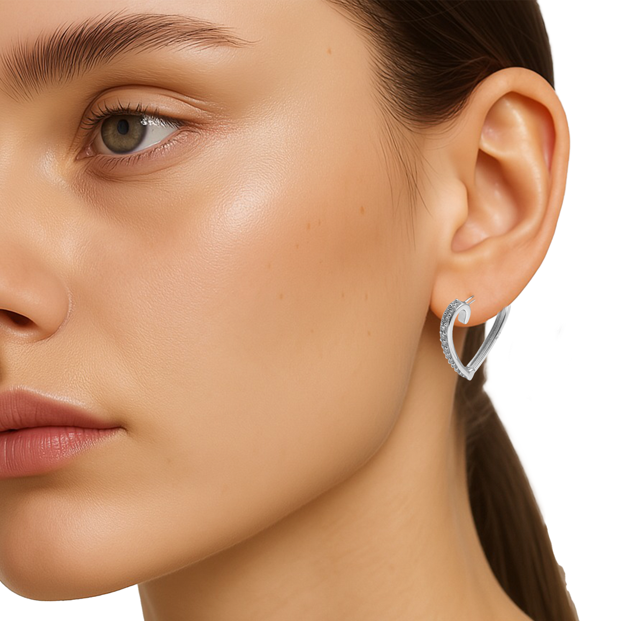 Huggies Silueta Corazon con Micro Circonias Plata .925, look versatil. Tamaño: 1.4 cm