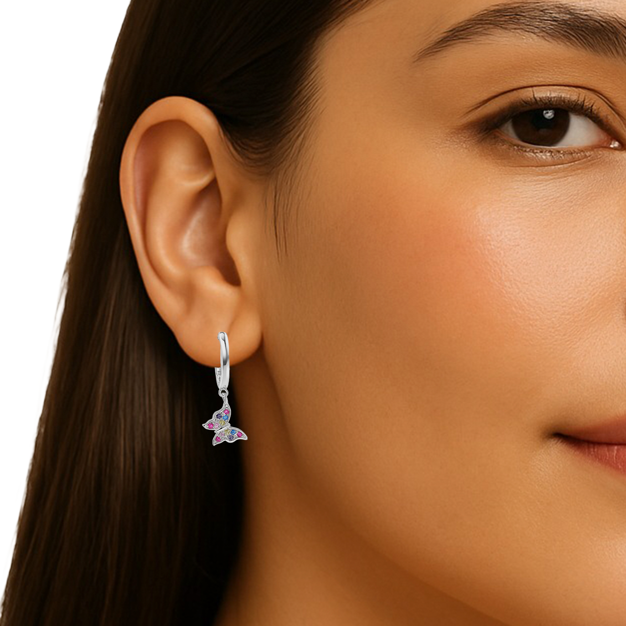 Huggies Mariposa Colgante con Multi Circonias Plata .925. Tamaño: 2 cm
