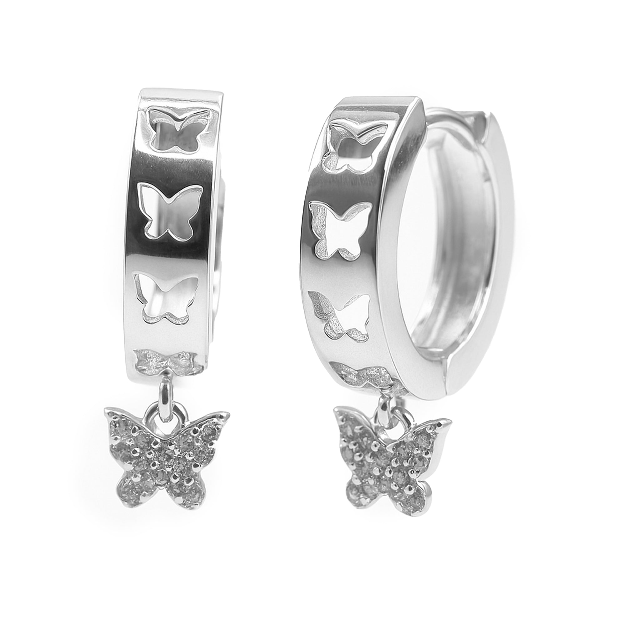 Huggies Ancha Mariposa con Micro Circonias y Calada Plata .925. Tamaño: 2 cmDescargar Imagen