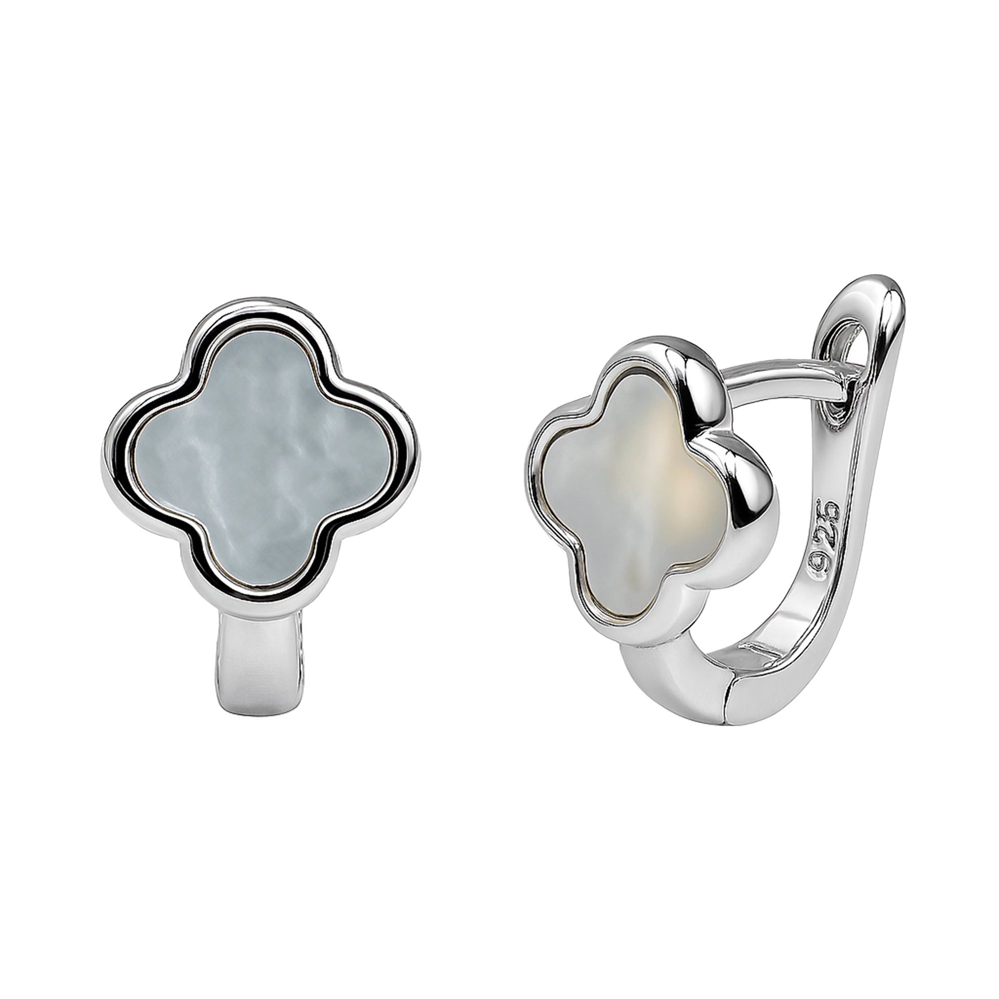 Huggies Flor Inspirado Van C Chico con Madre Perla Plata .925 con Rodio