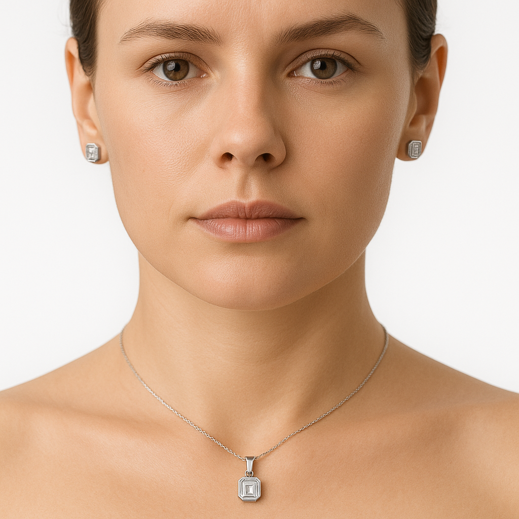 Juego Arete, Dije con Circonia Biselada con Rodio