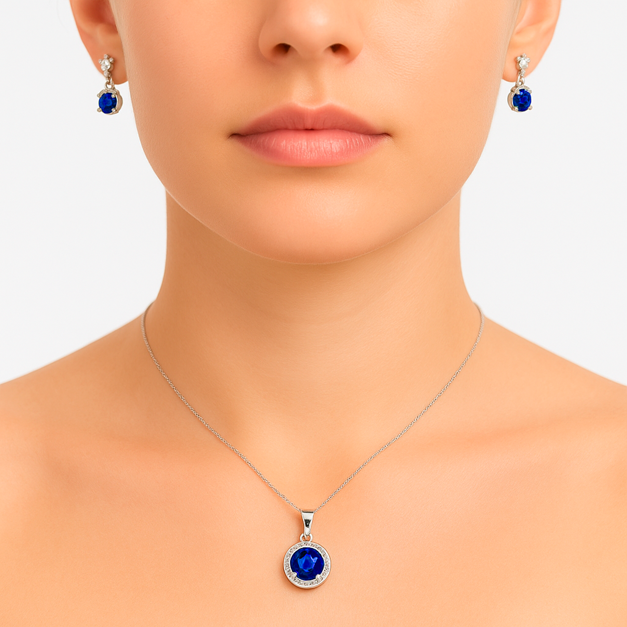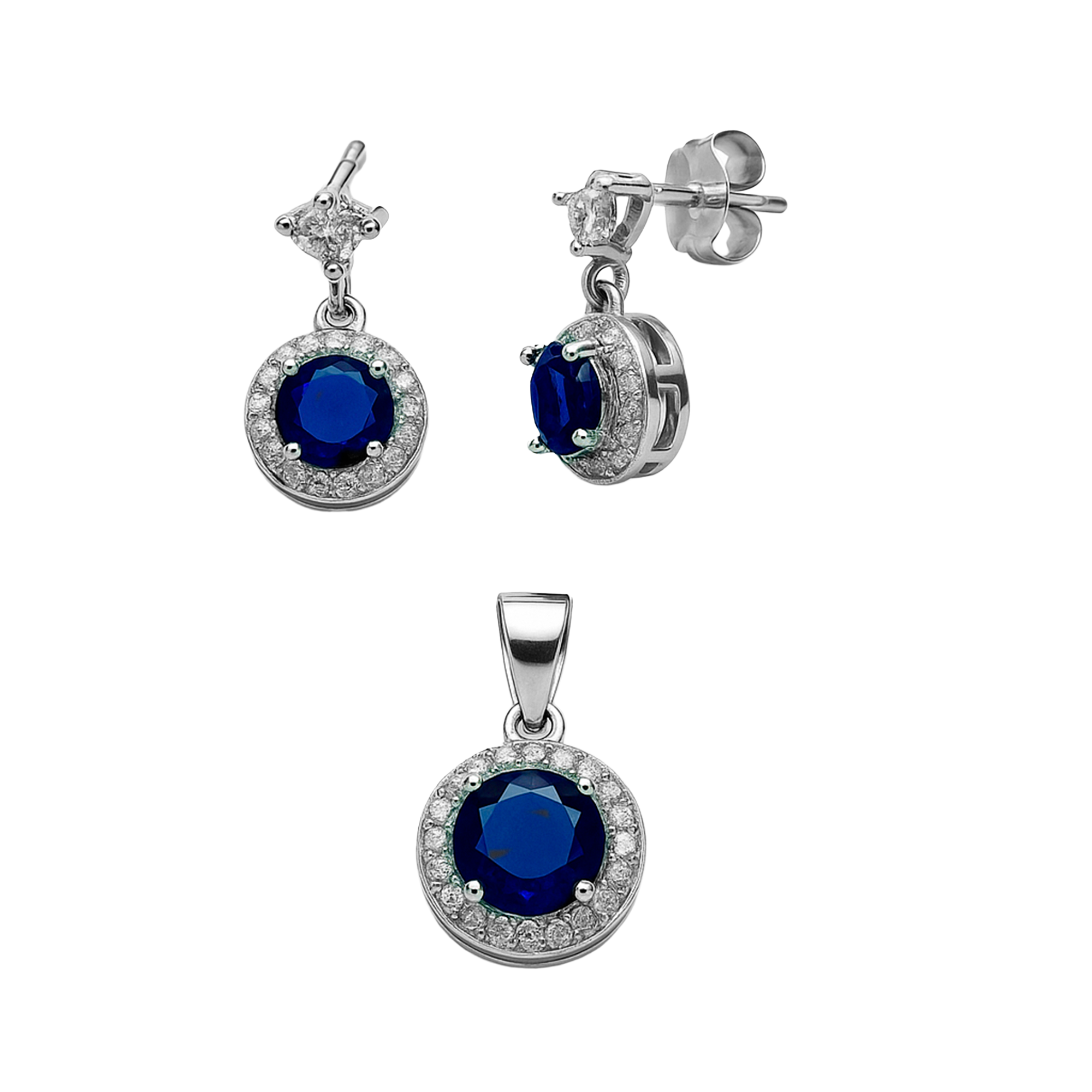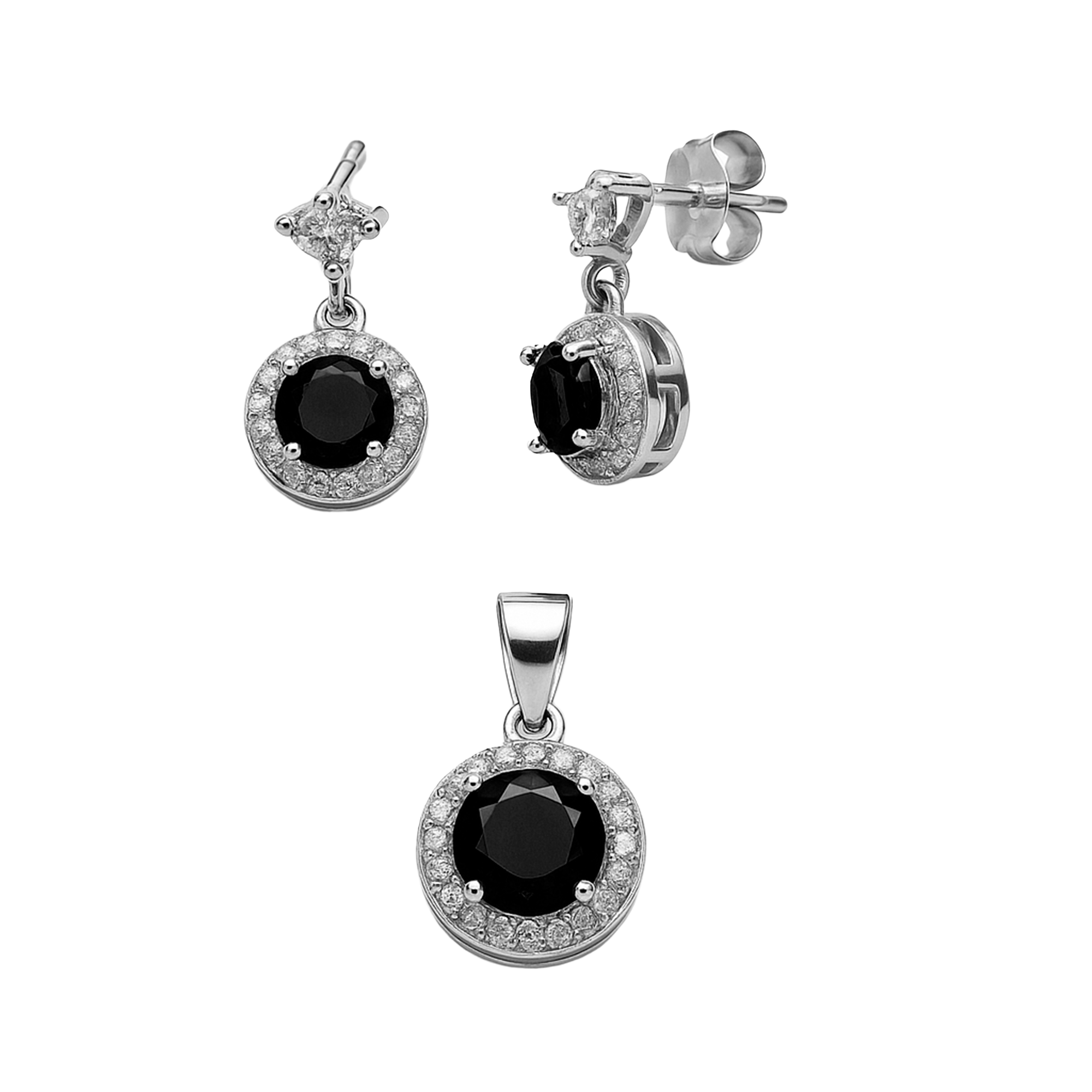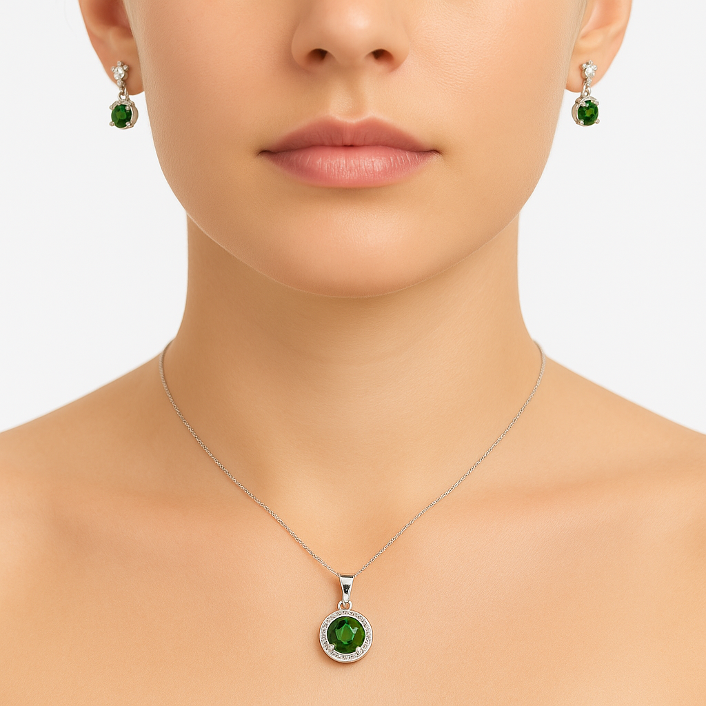 Juego Arete, Circonia Redonda con Microcirconias Plata .925 con Rodio Disponible en: Verde, Negro, Azul Marino, Blanco y Rosa Fuerte
