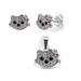 Set arete, dije con microcirconias blancas y moño rojo Plata .925